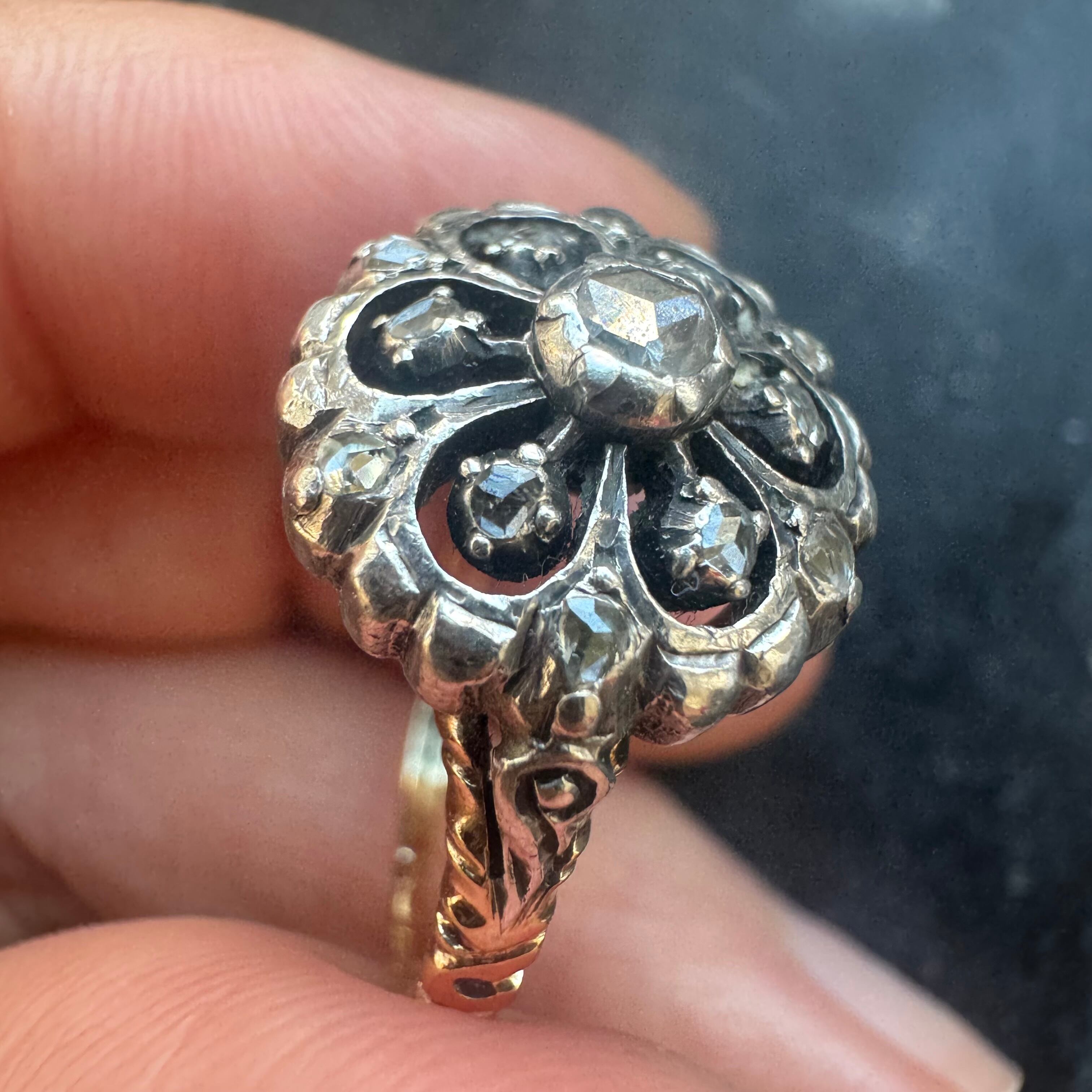 1880年頃から流行したこちらのタイプのダッチリングは当時まだホワイトゴールドがなくゴールドとシルバーで造られているのが特徴です。