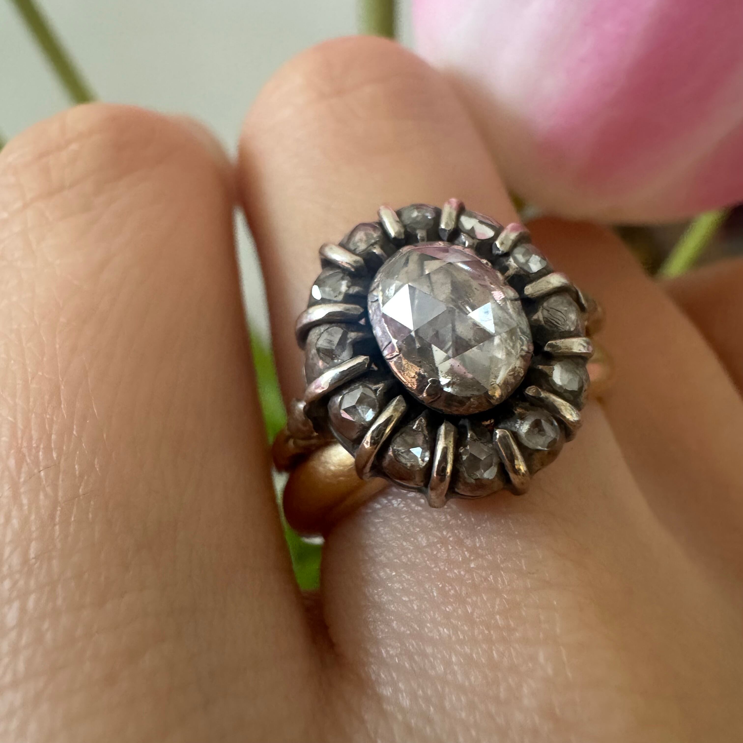 大粒ダッチローズカット ダイヤモンド アンティーク リング