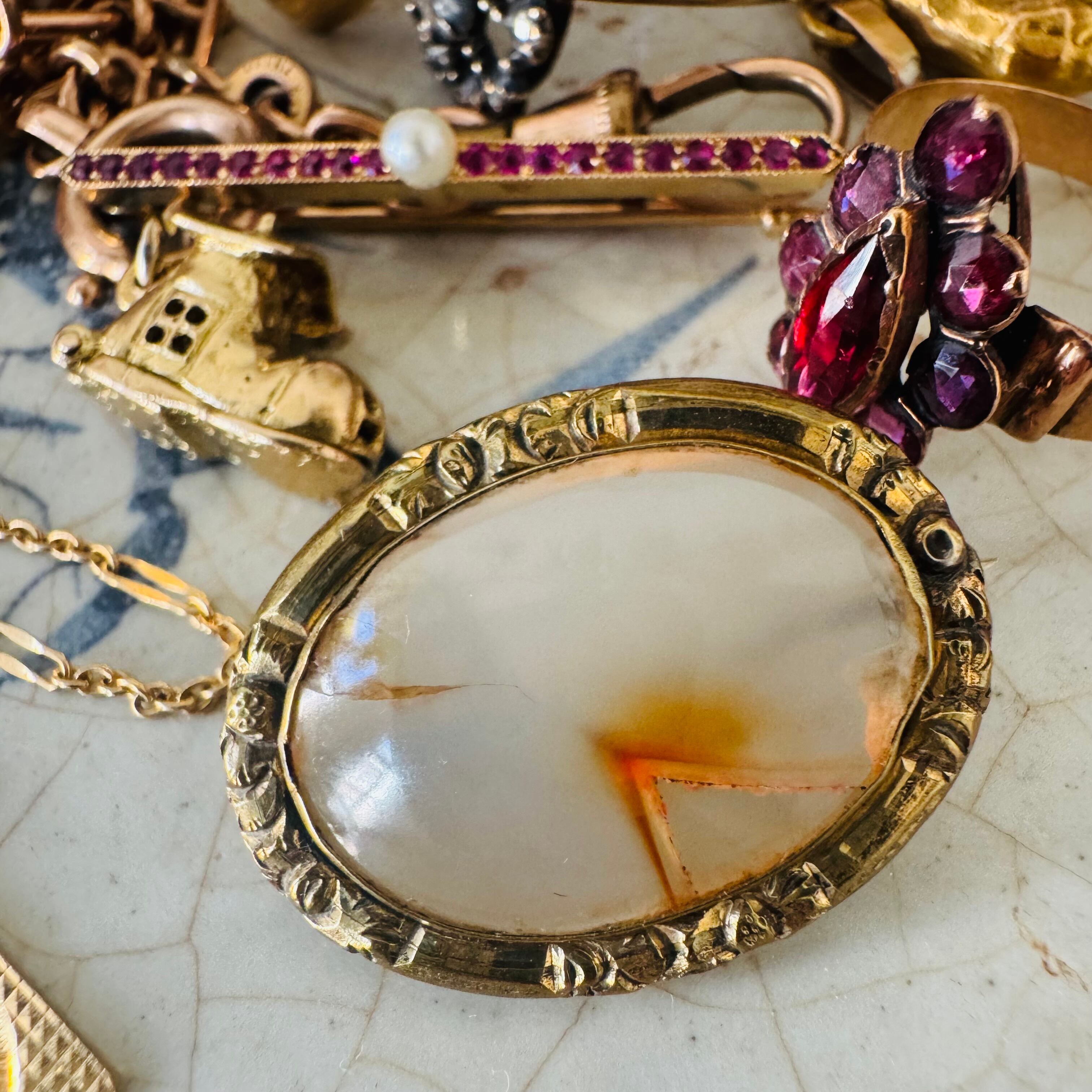 英国 アンティーク 瑪瑙 ブローチ