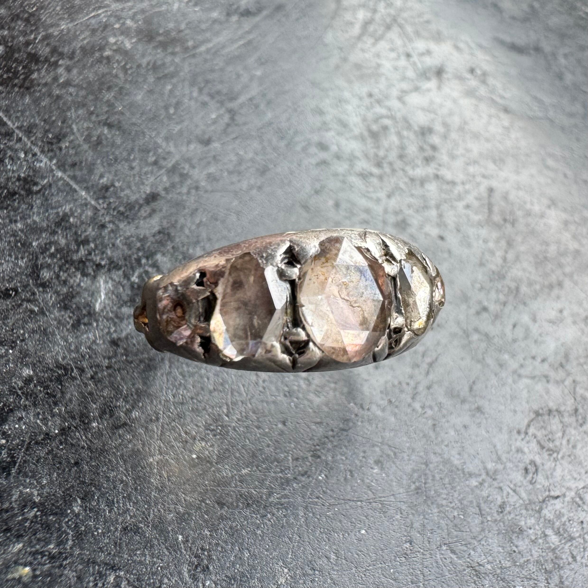 うるうると輝きを放つ歪なかたちをしたローズカットダイヤモンドリングのご紹介です。