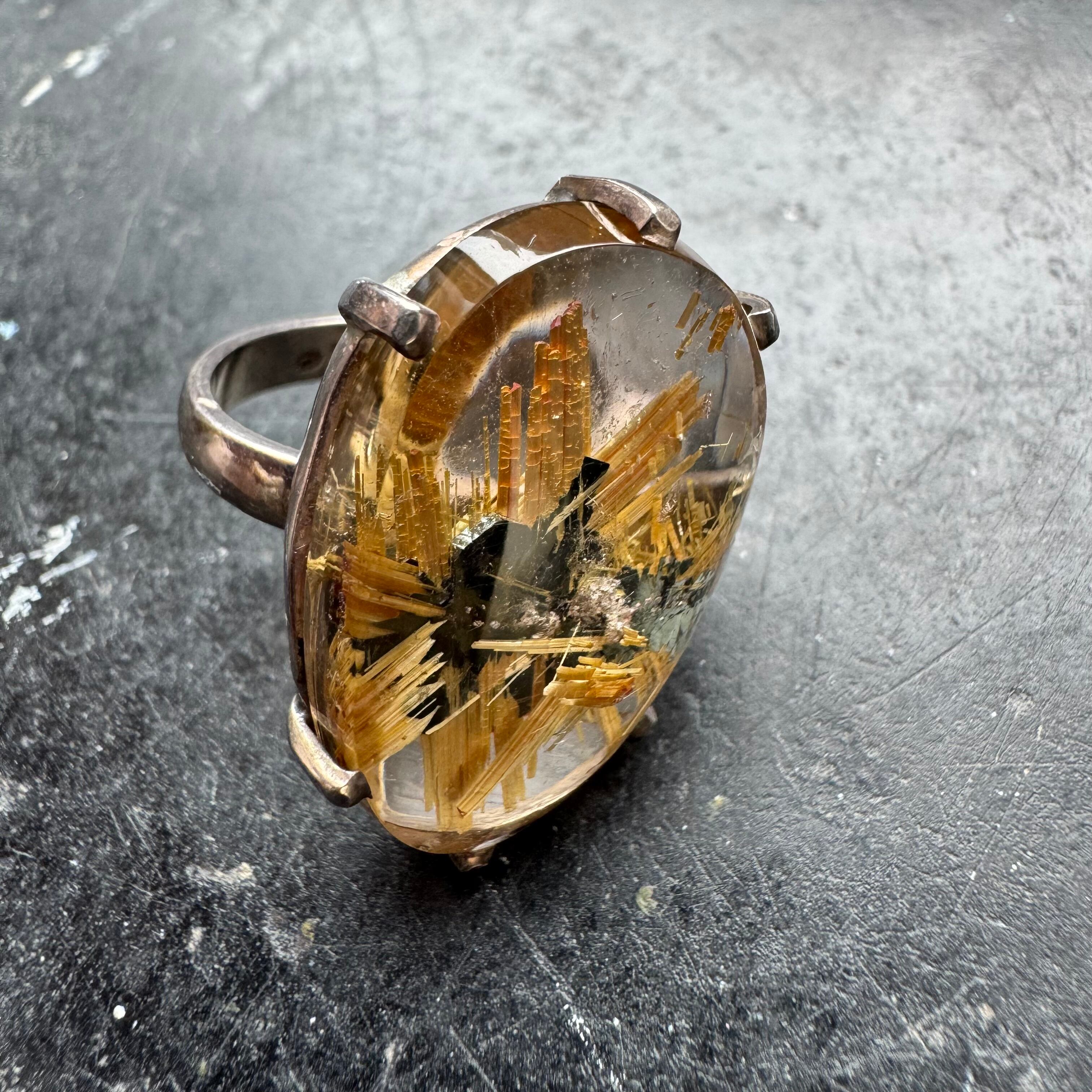 左は透き通った水晶の中に花火のようにハリが弾け向日葵のようにも見えます。