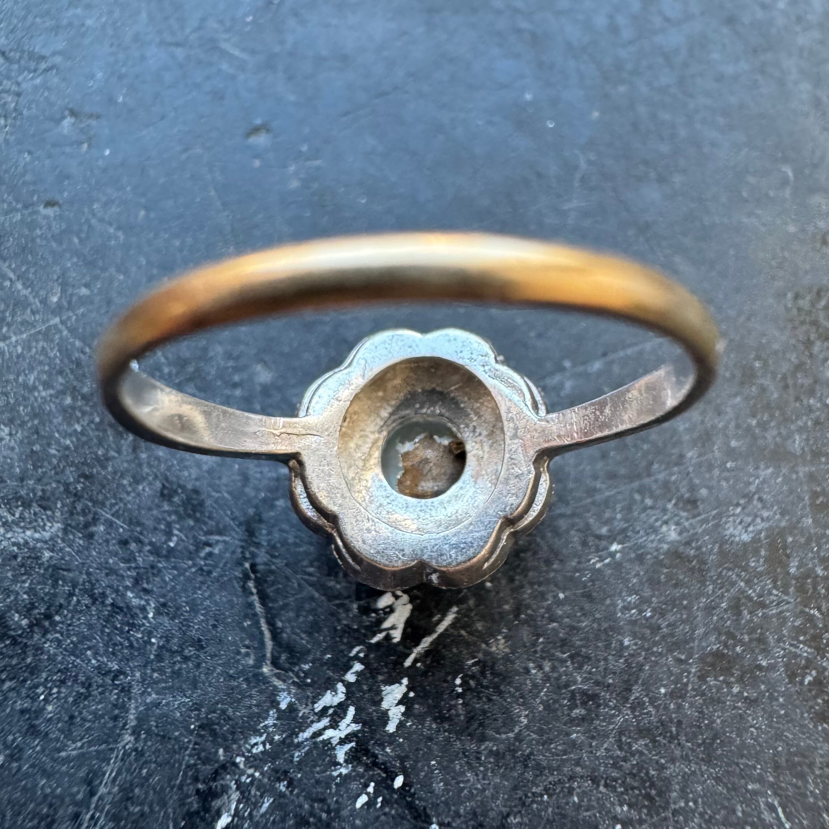 刻印につきましてフェイスからショルダーにかけてシルバー、そこから9金でアームを繋げられており9ct&SILと残っています。リサイズにより二種類の金属となった可能性が考えられます。