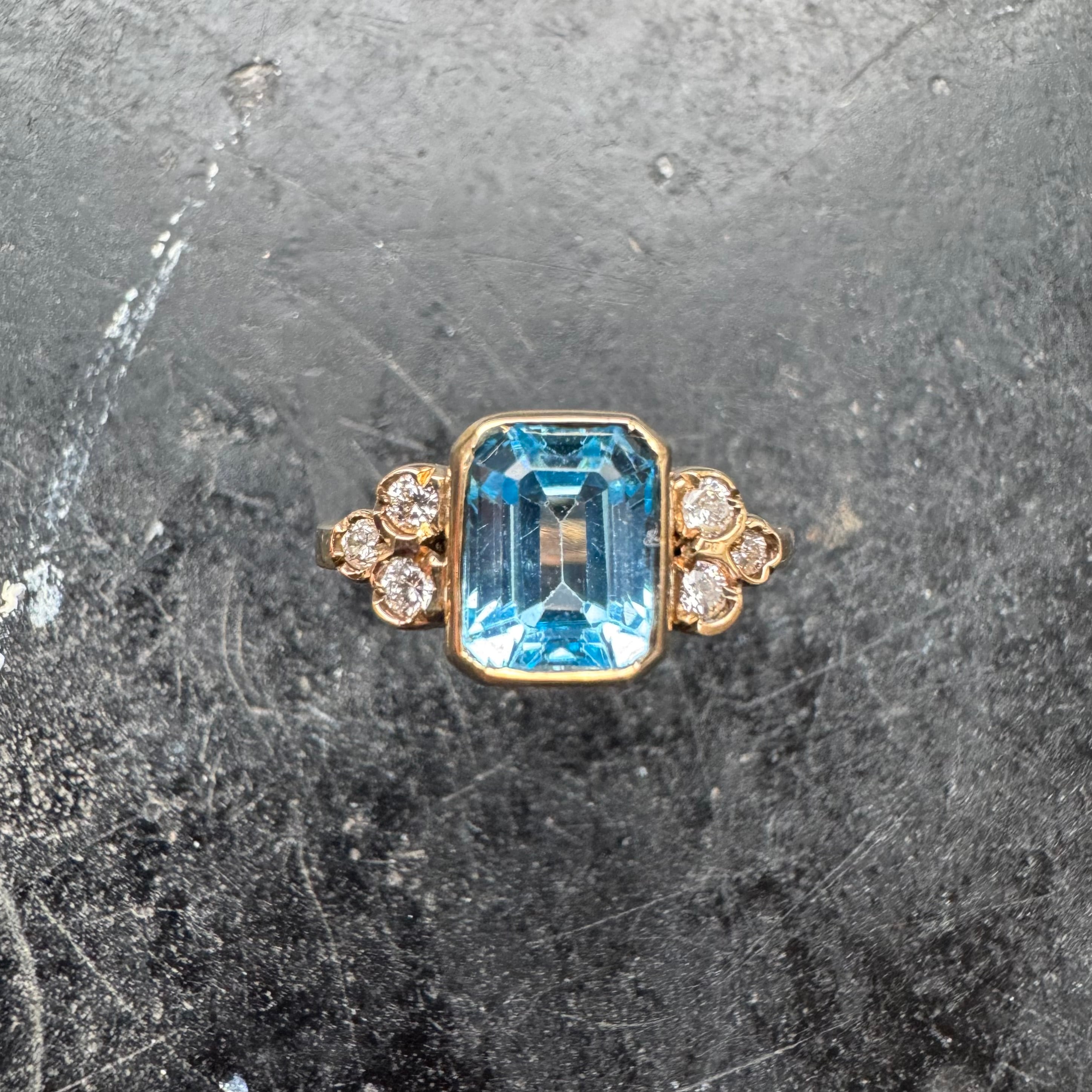 英国ヴィンテージ アクアマリン & ダイヤモンド リング