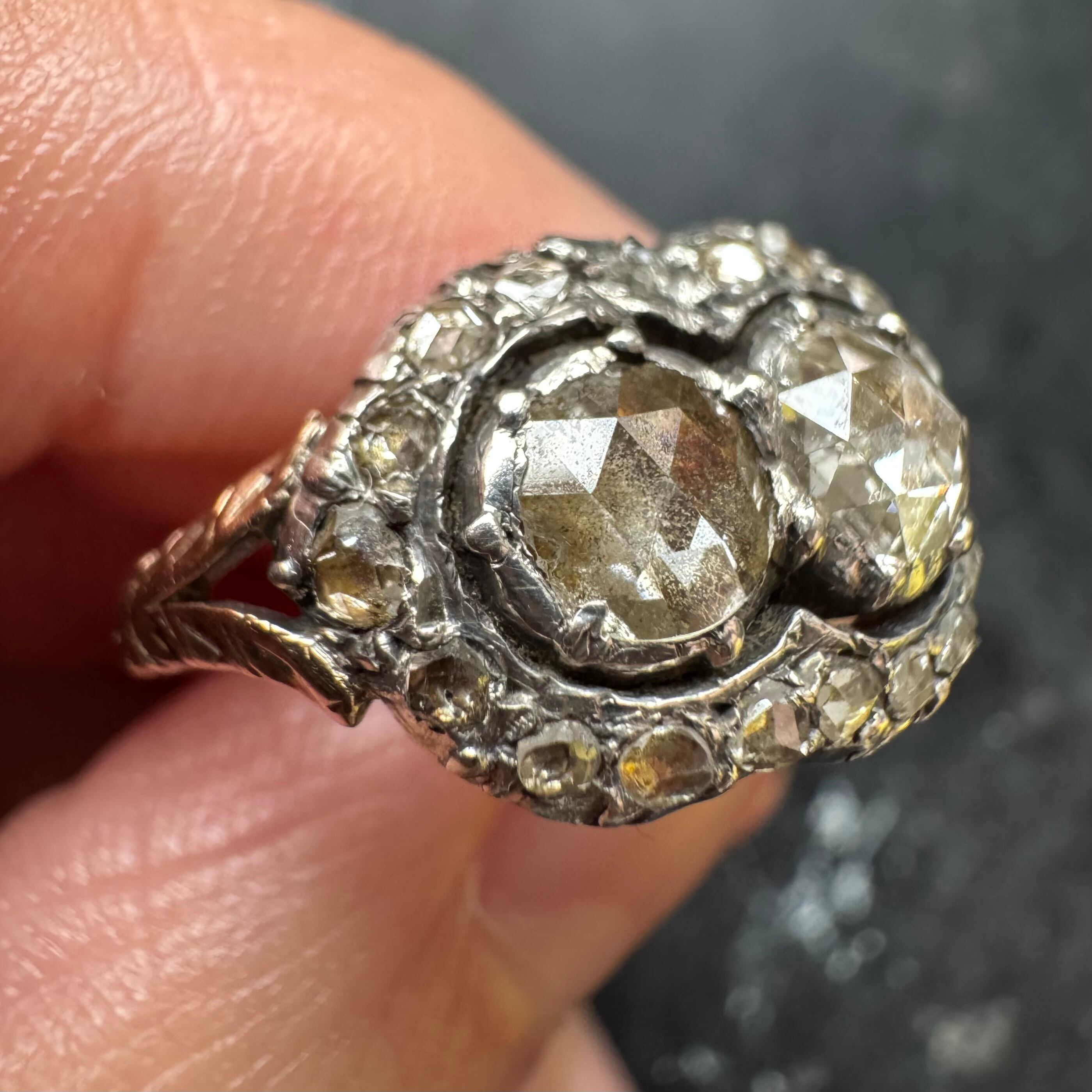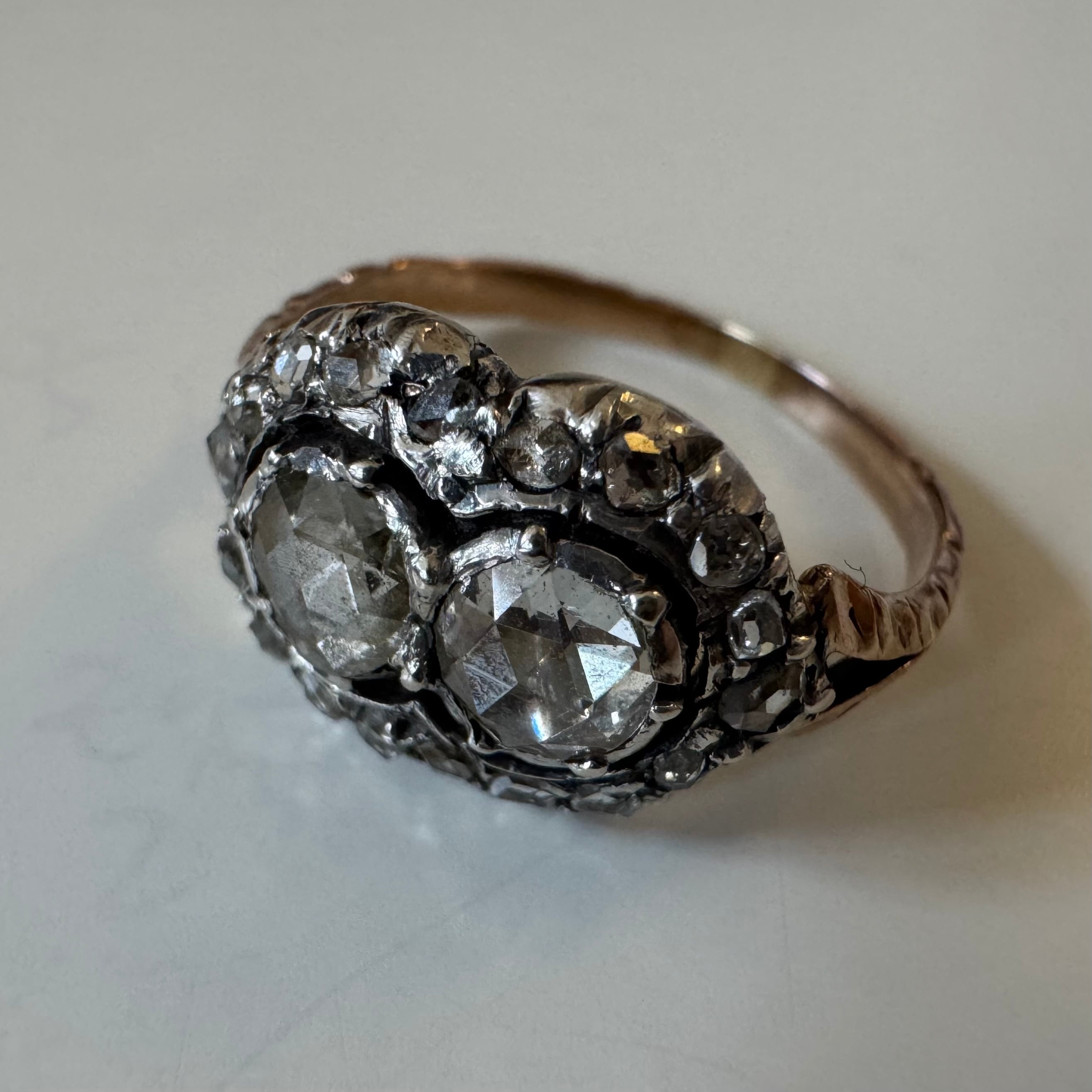 雪の結晶がキラキラしているように動きとともに輝きに魅了されるローズカットダイヤモンドリングのご紹介です。
