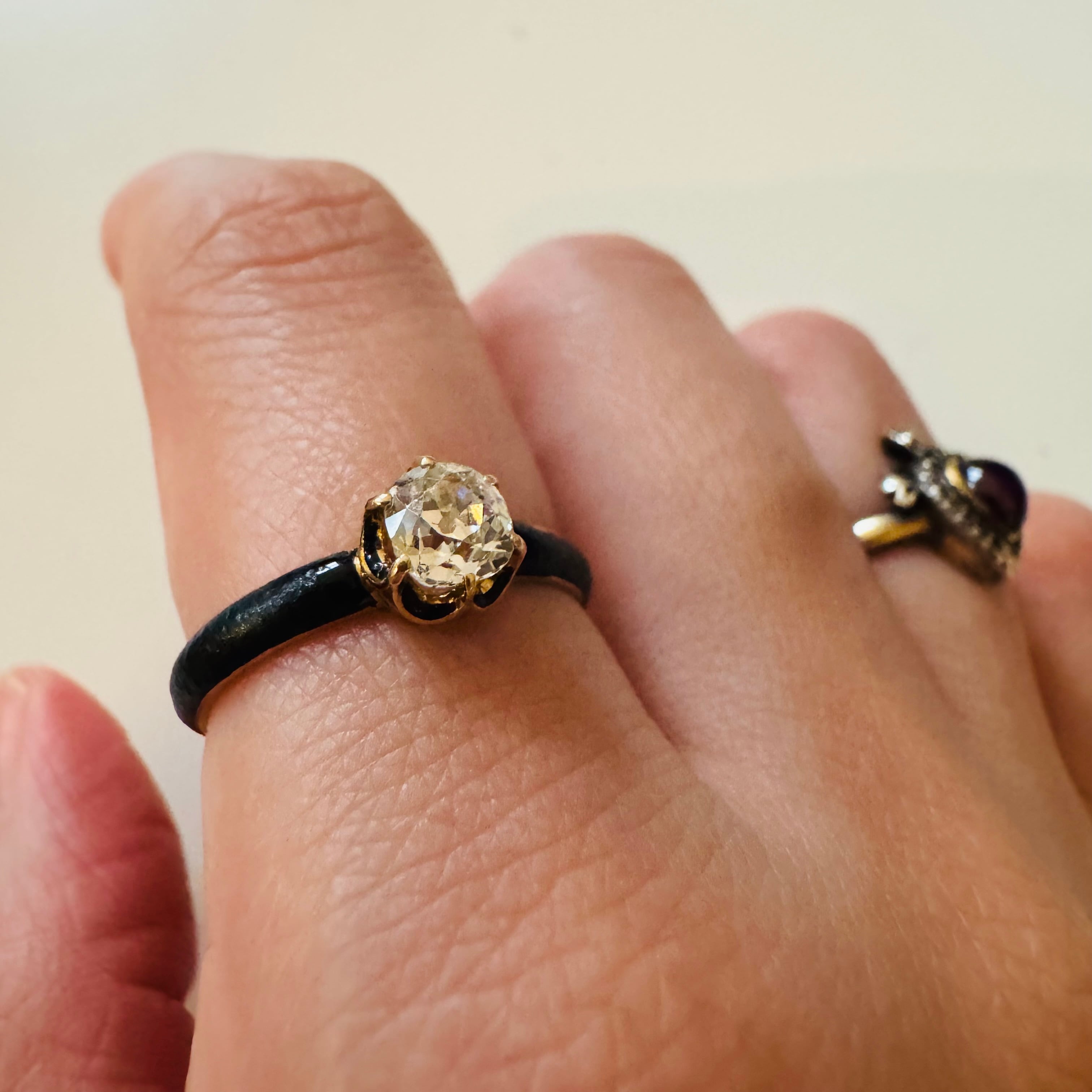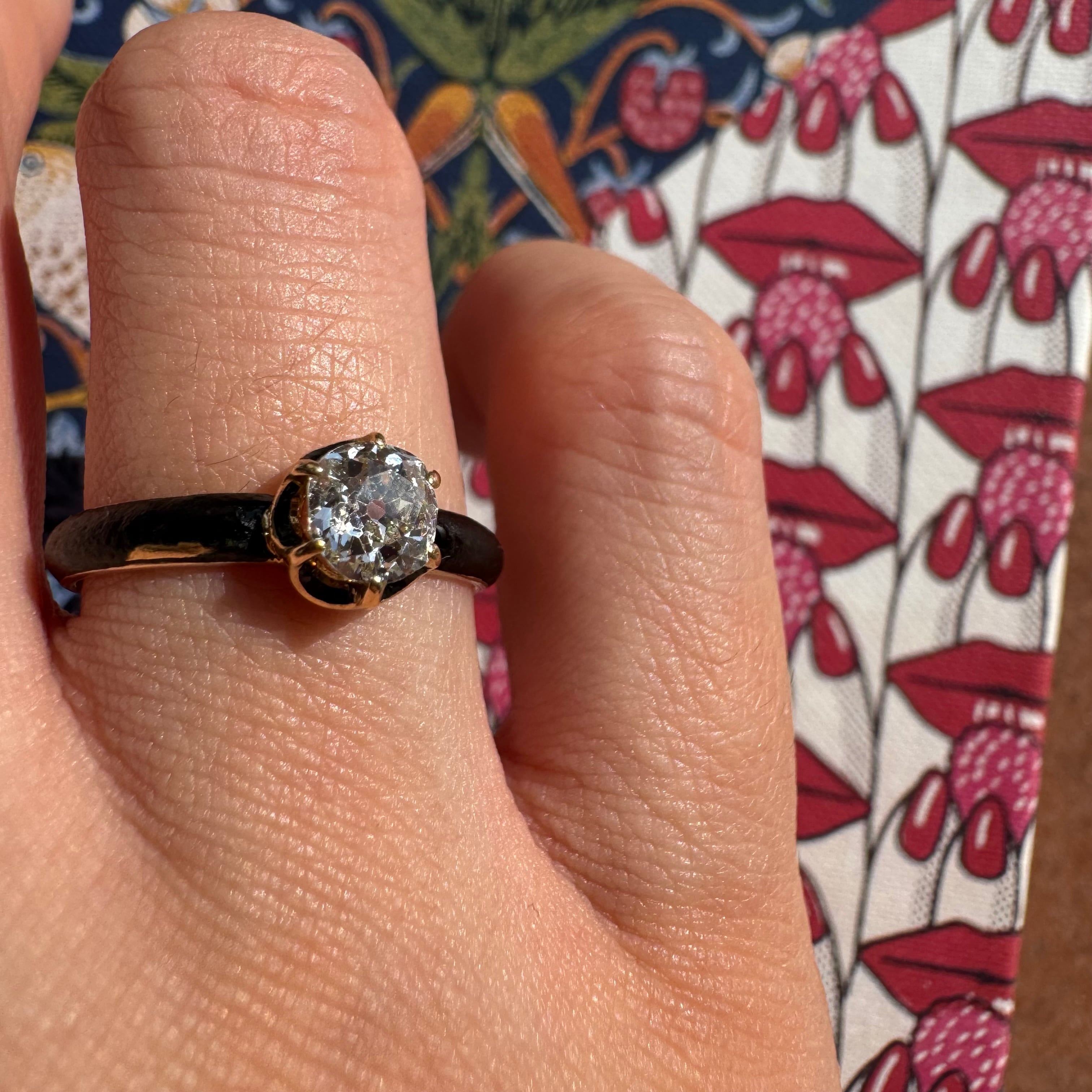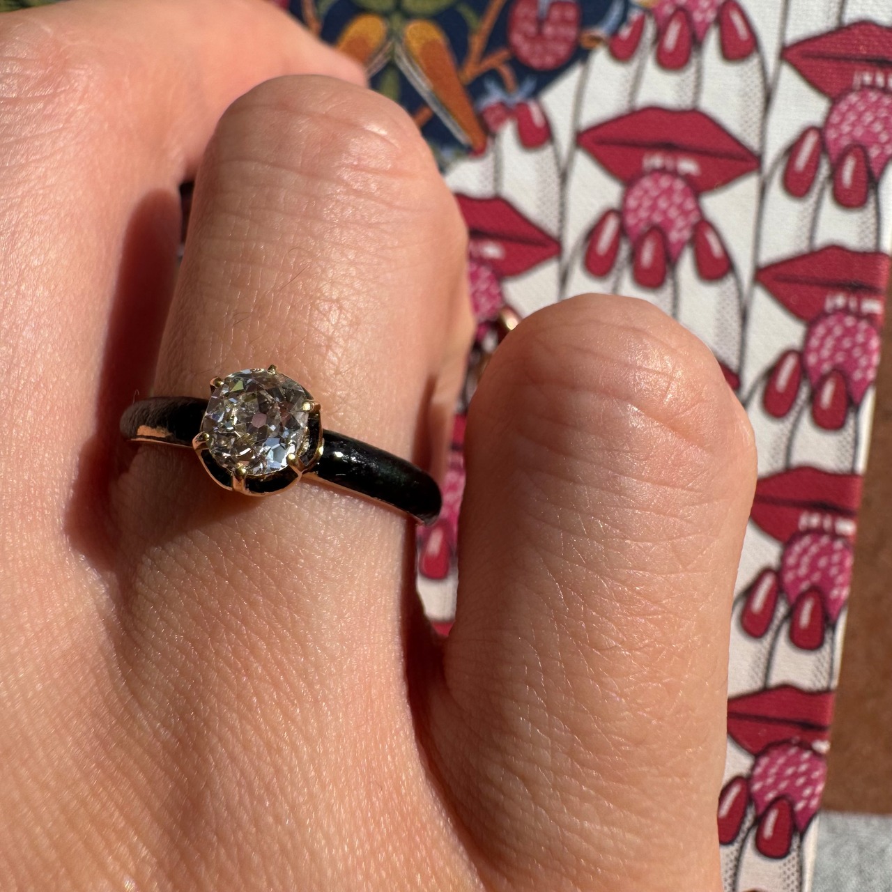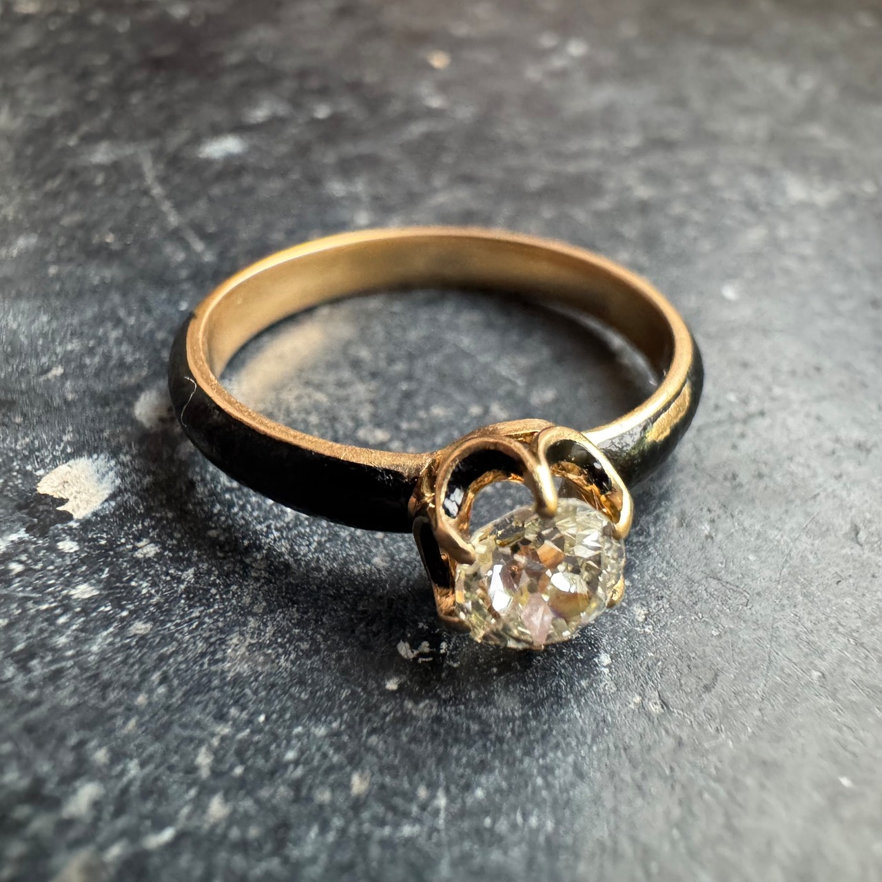 アームと石座の内側の細い枠にブラックのマットエナメルが施されておりスエードのような質感で当時のアンティークジュエリーに多く仕様されていました。