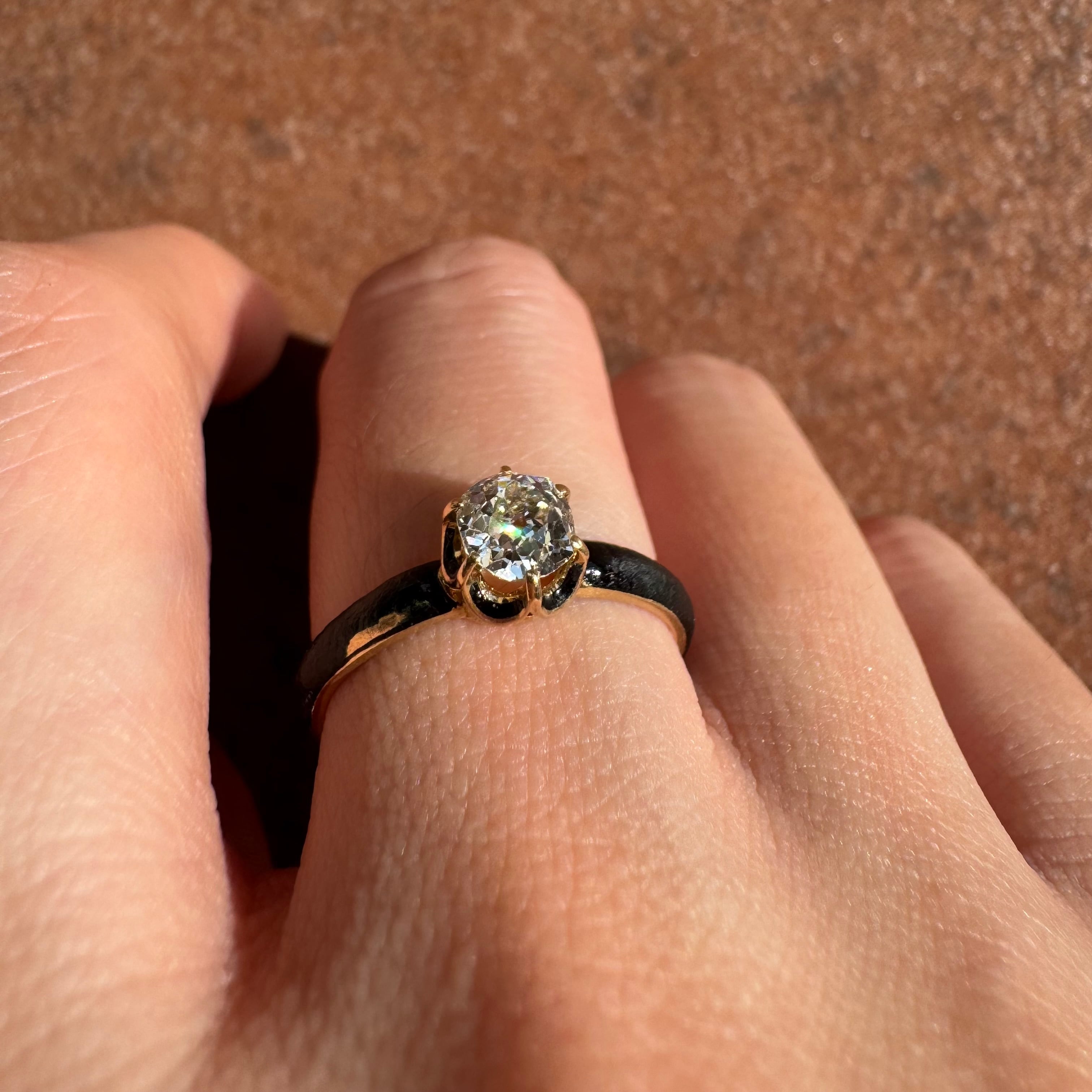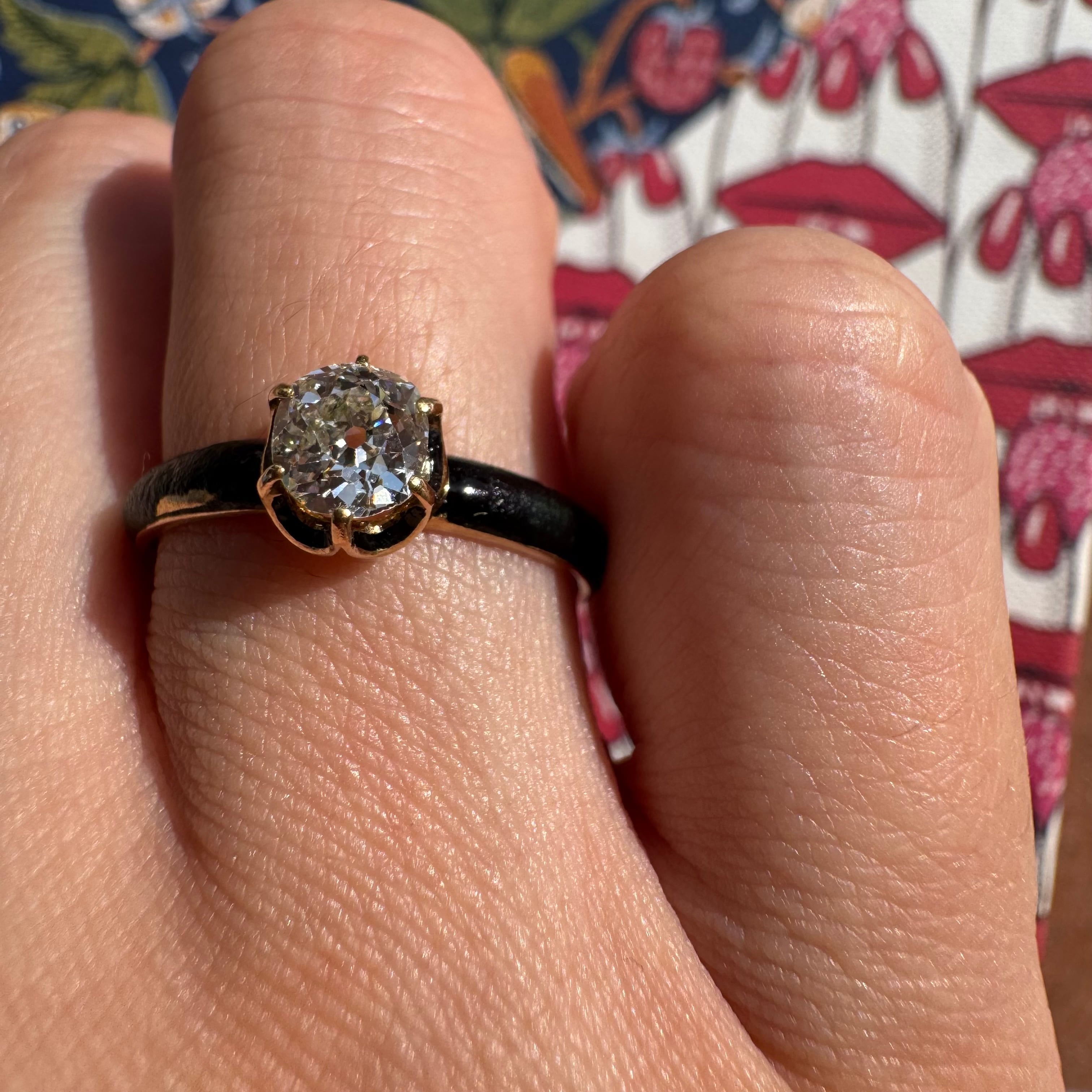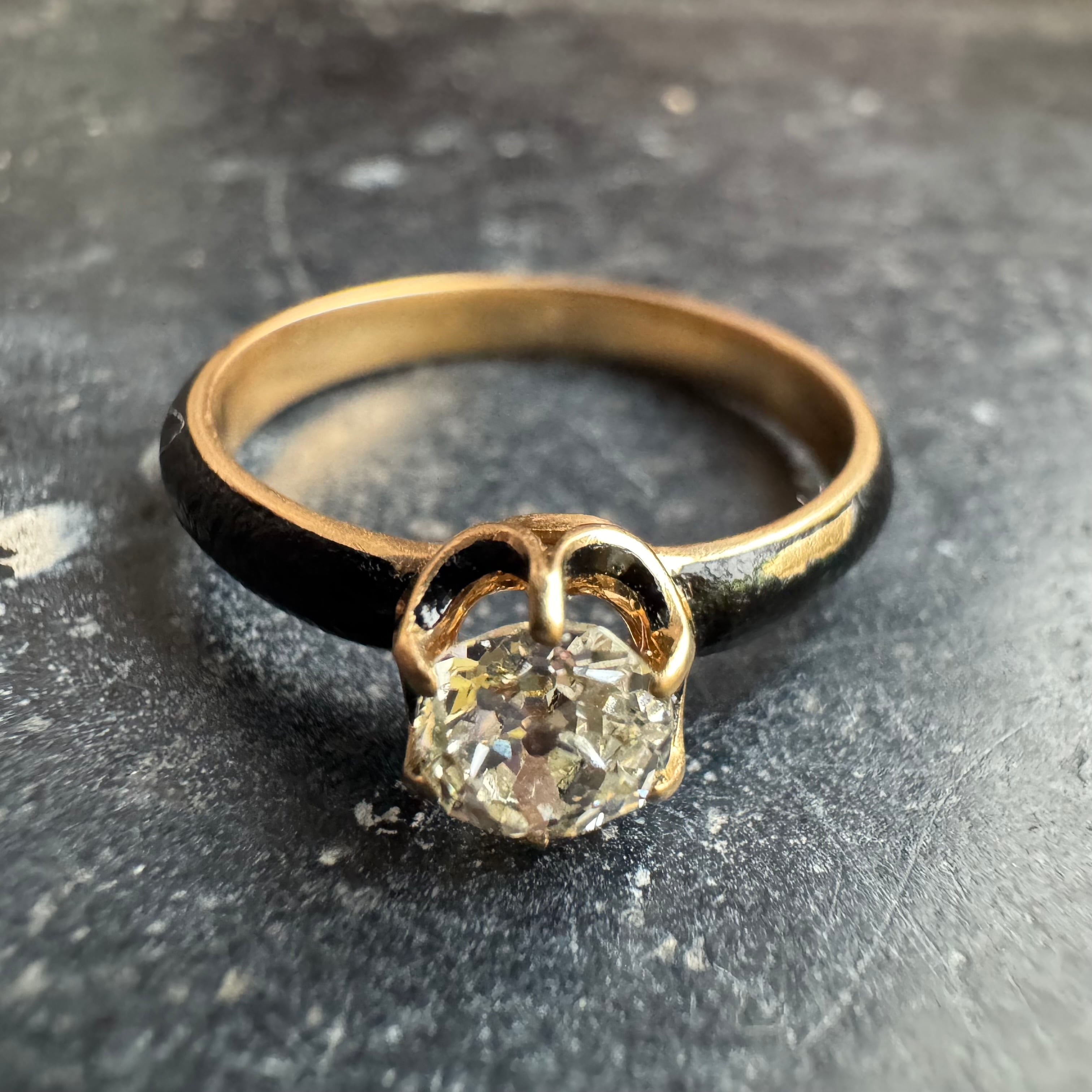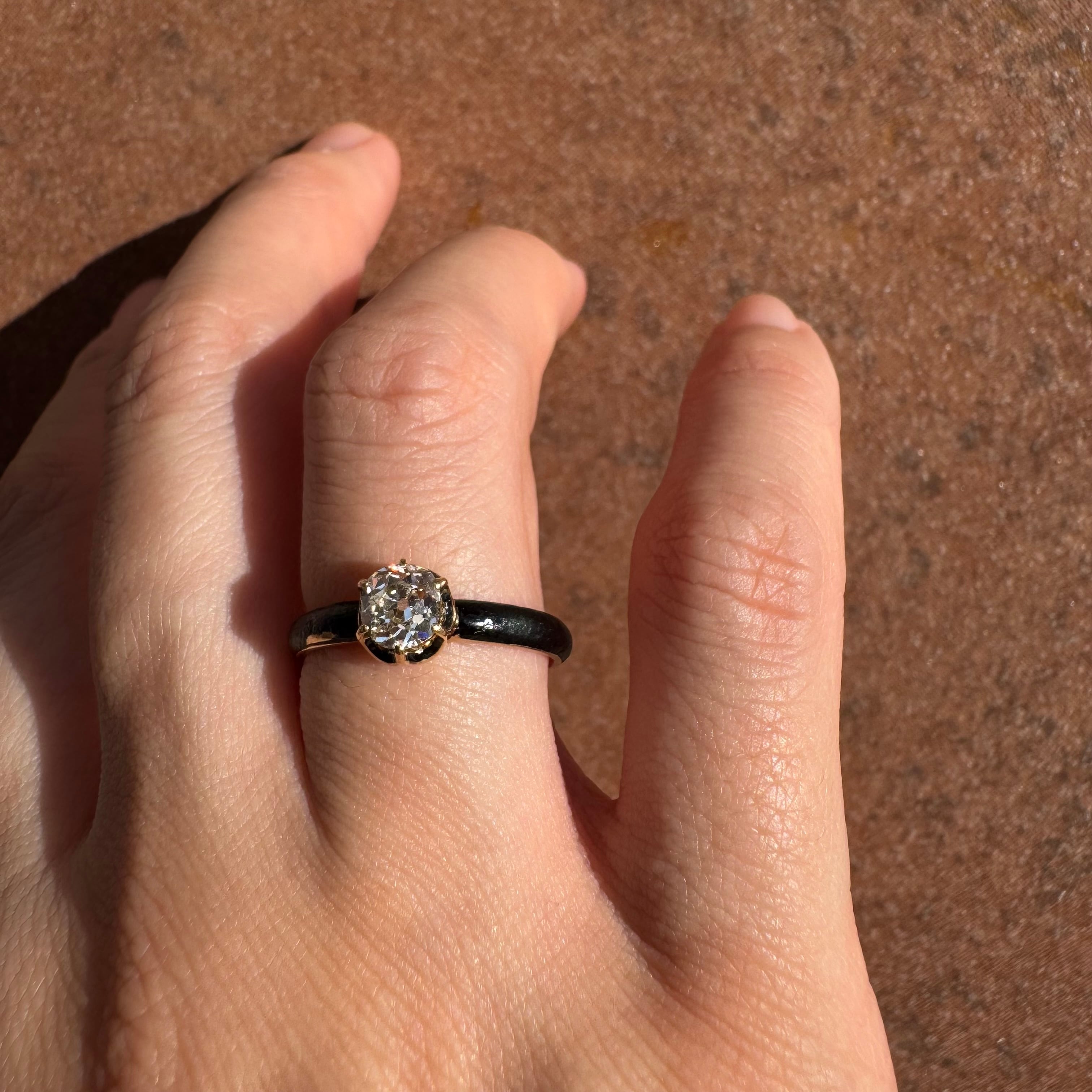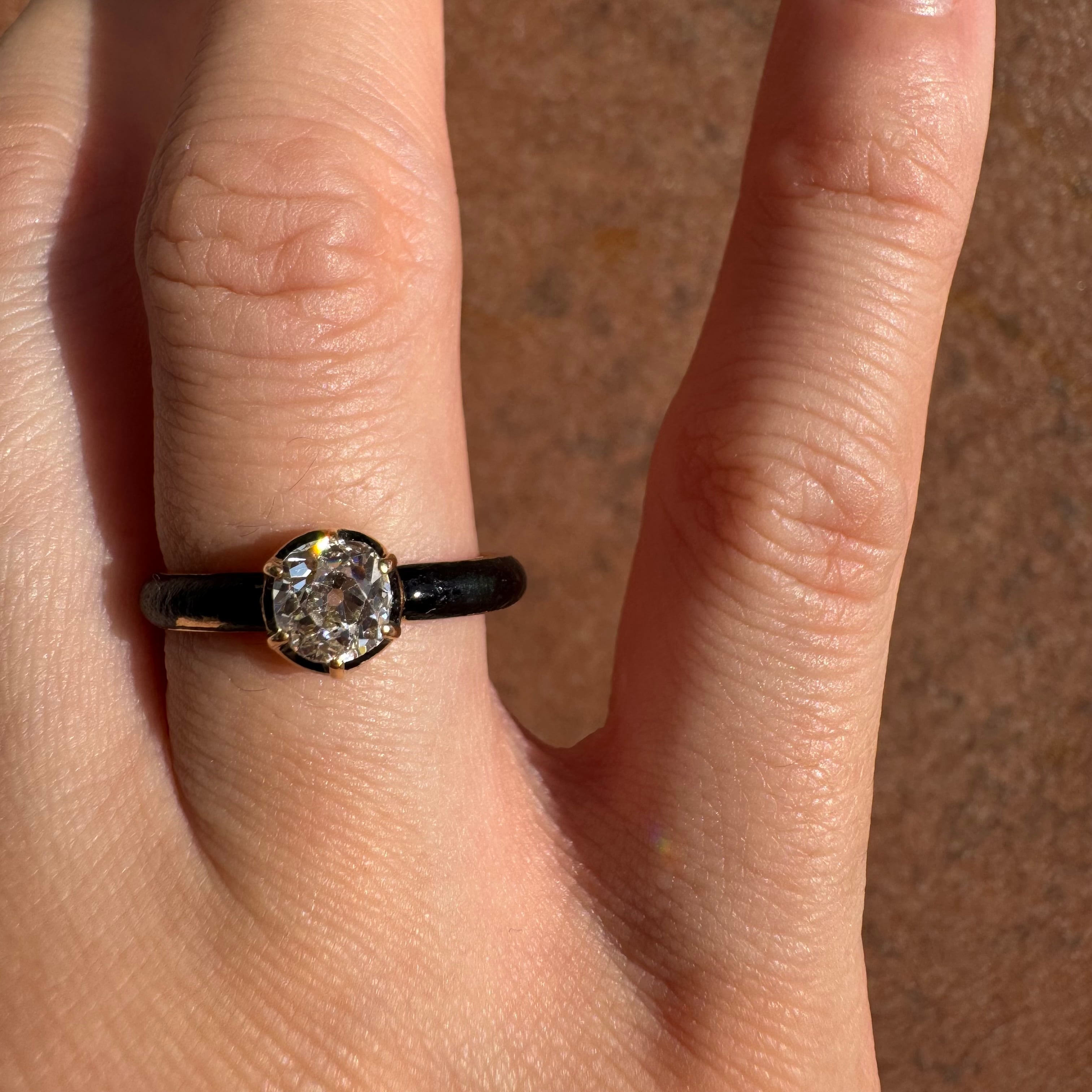 アームと石座の内側の細い枠にブラックのマットエナメルが施されておりスエードのような質感で当時のアンティークジュエリーに多く仕様されていました。