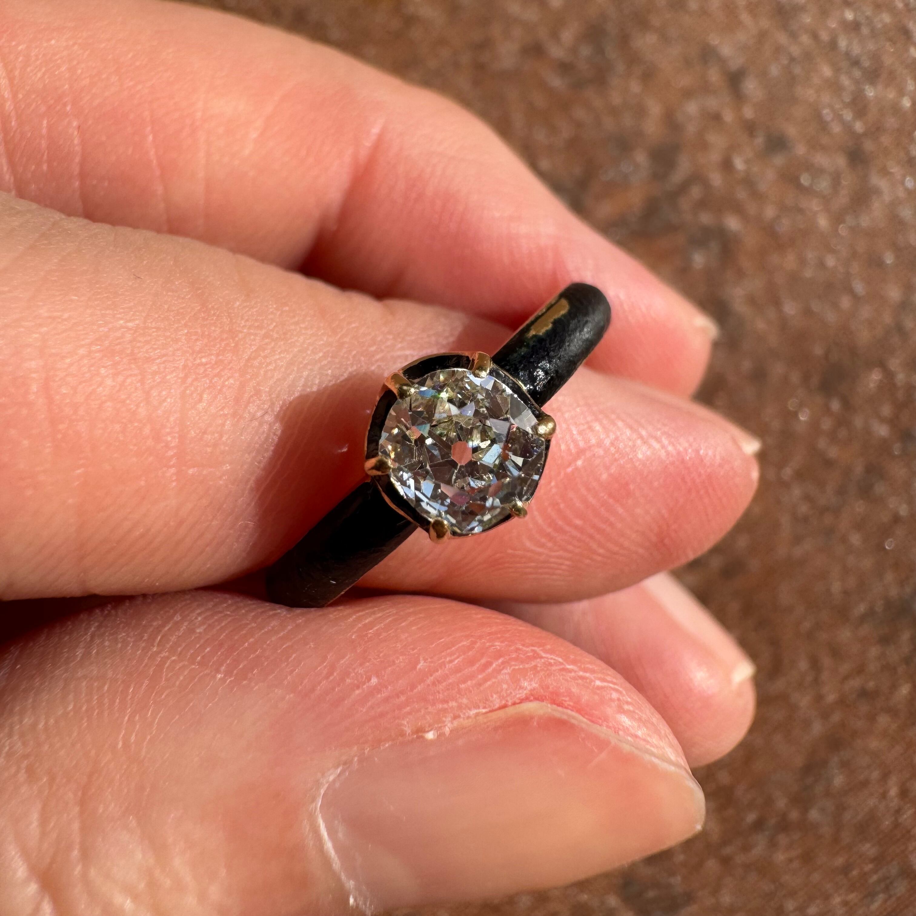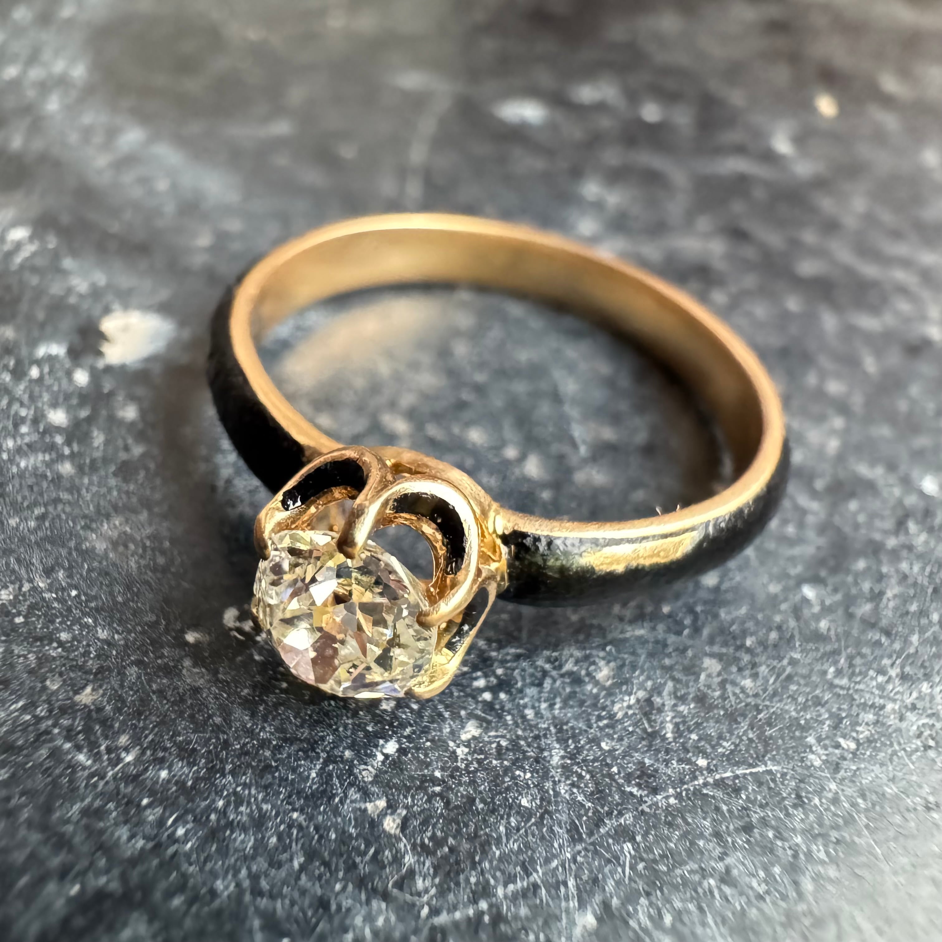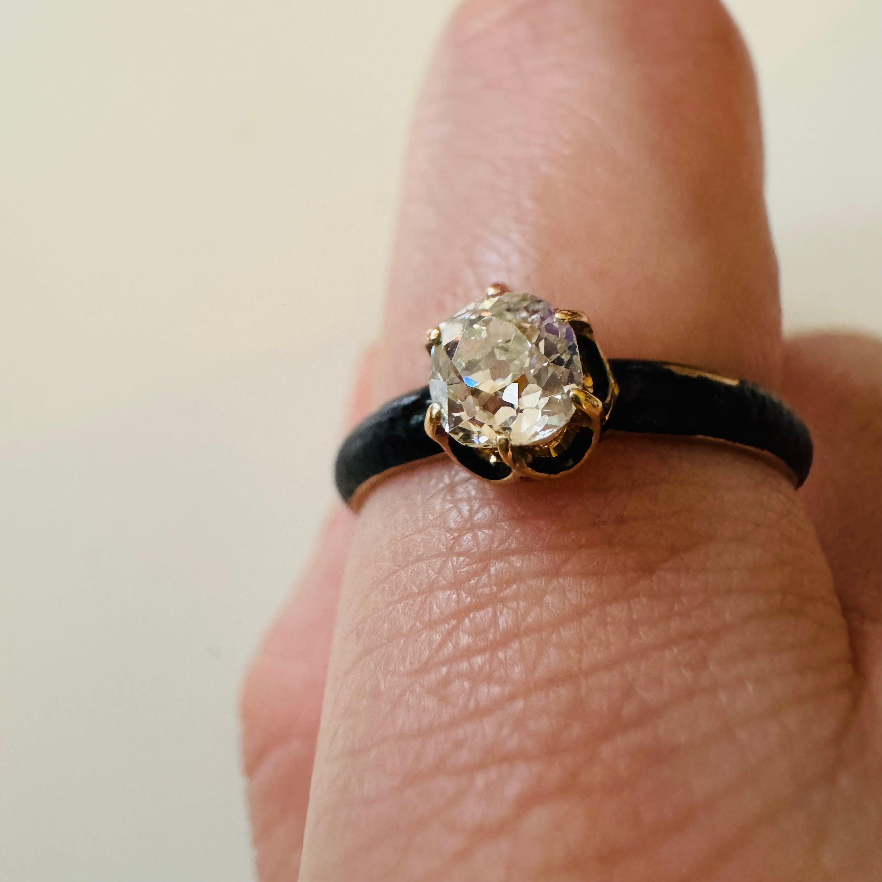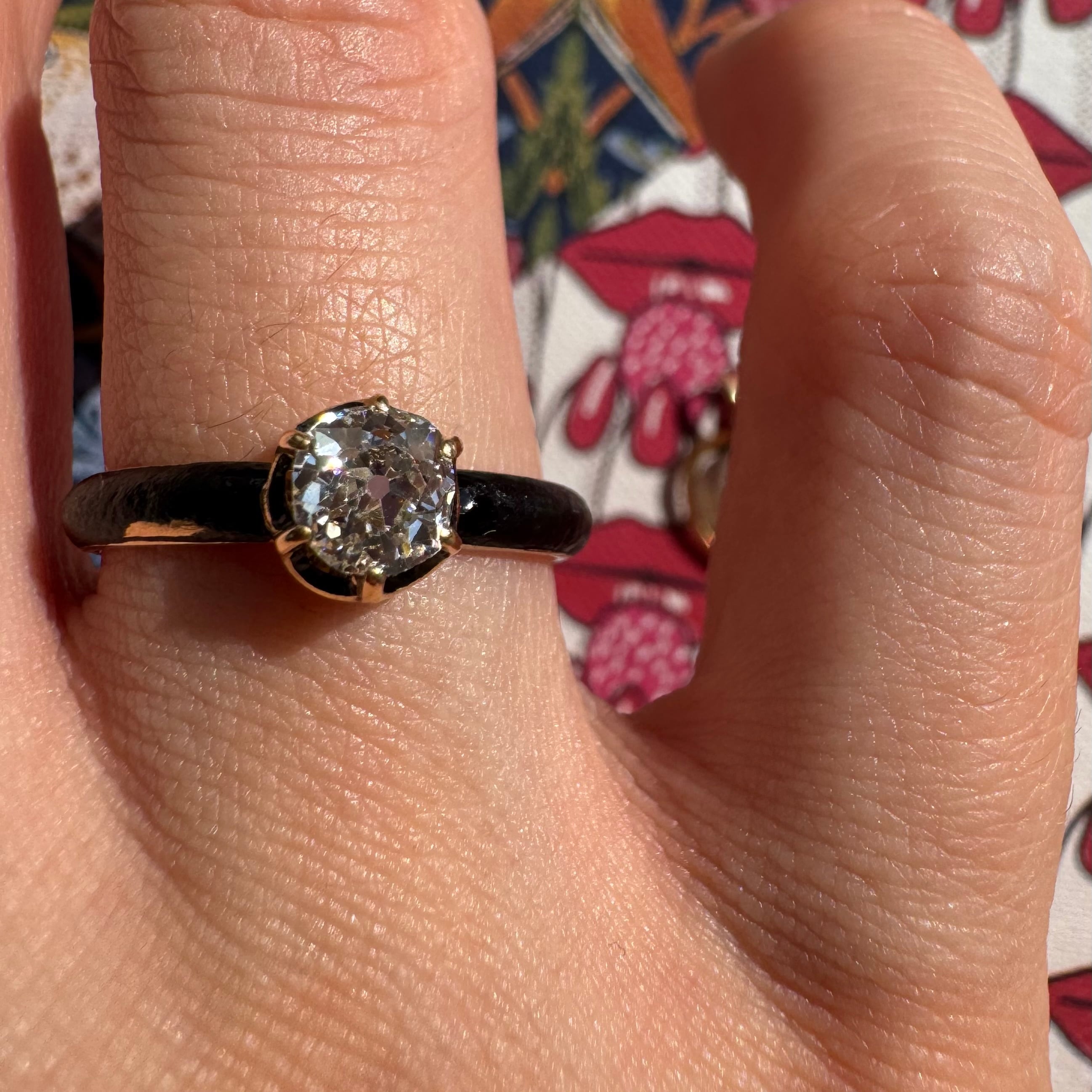 アームと石座の内側の細い枠にブラックのマットエナメルが施されておりスエードのような質感で当時のアンティークジュエリーに多く仕様されていました。