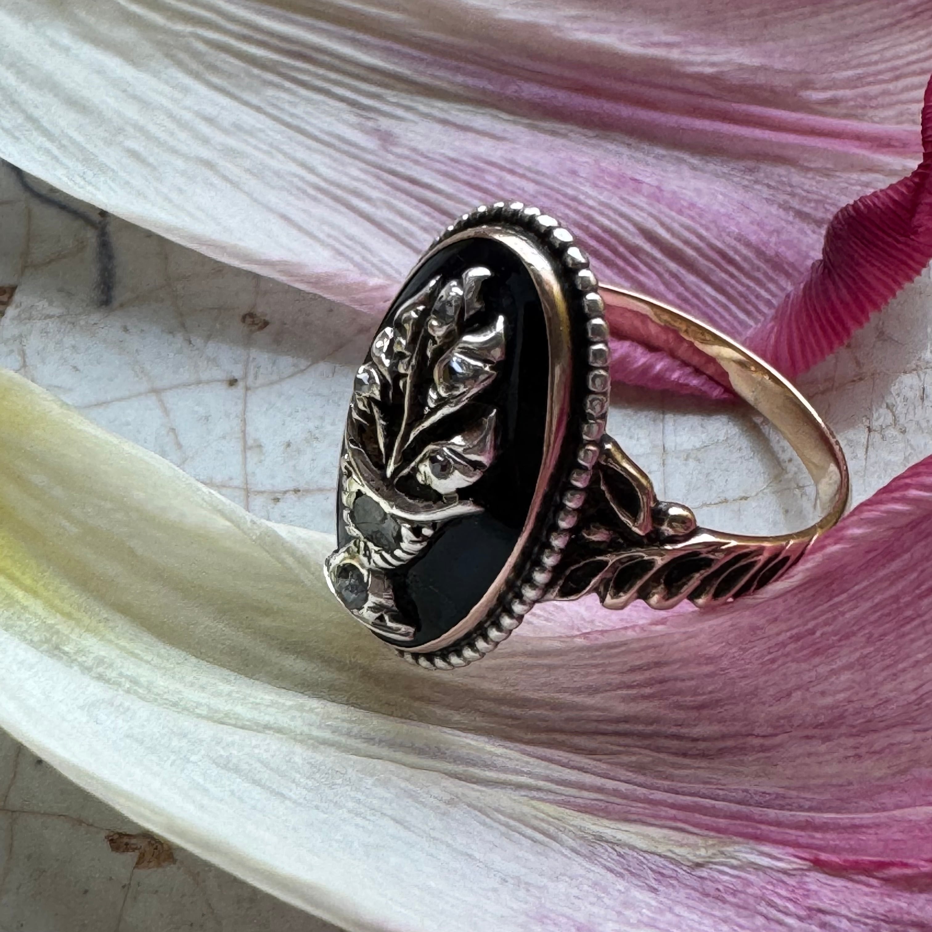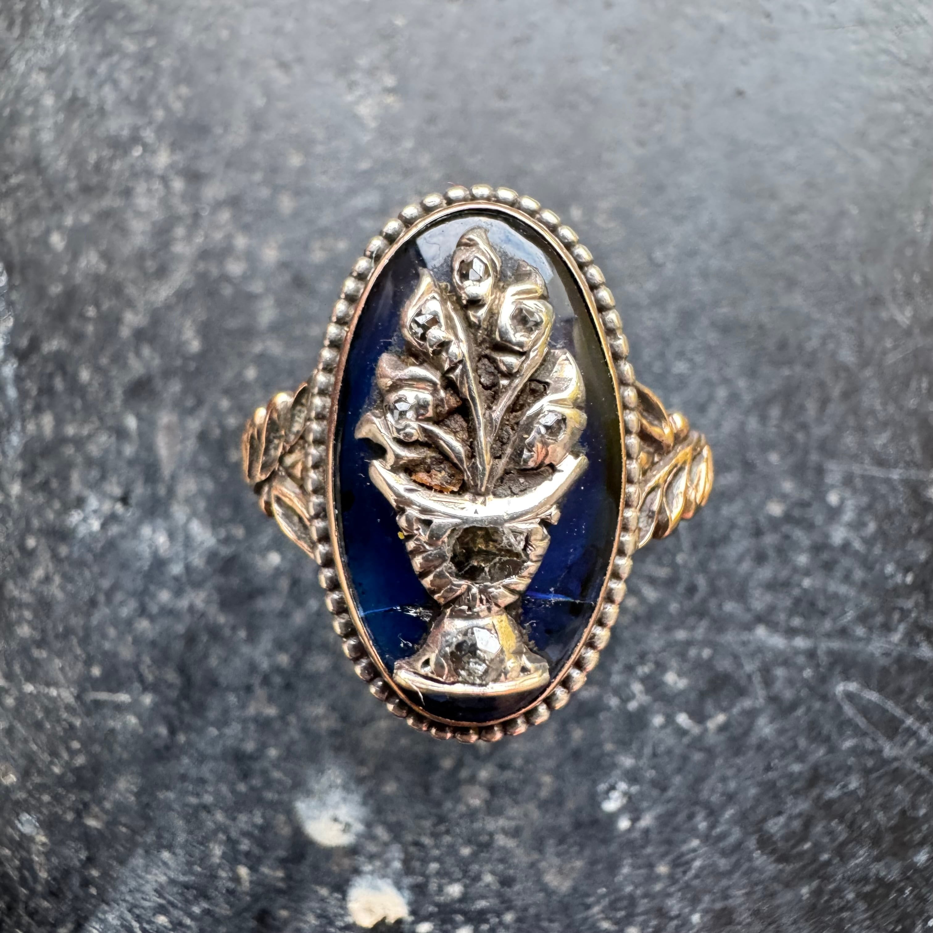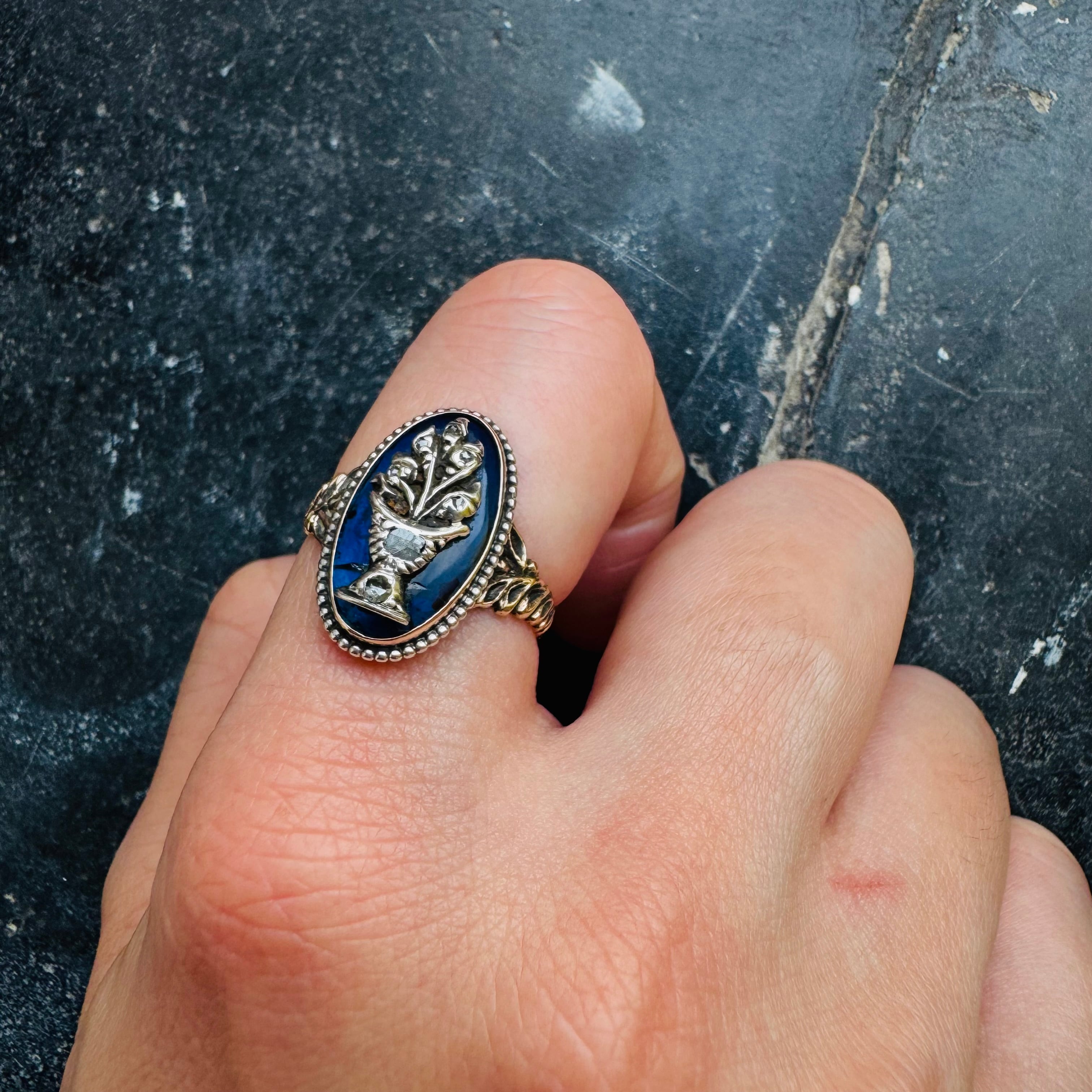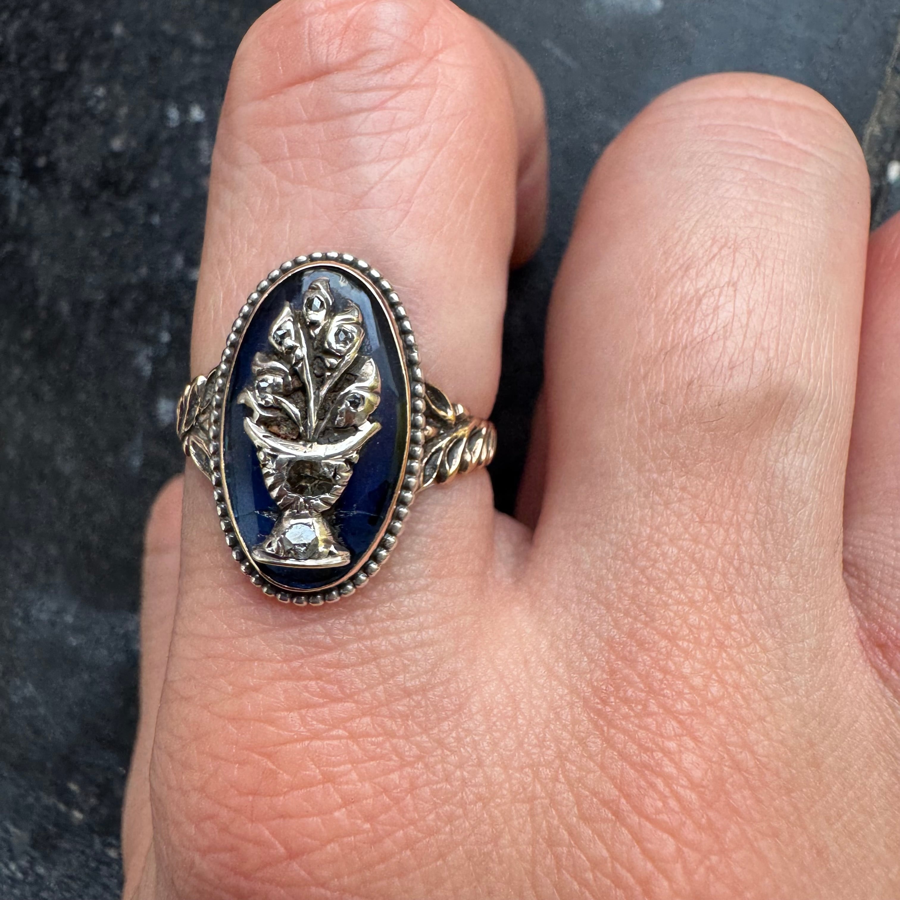 【希少】ローズカット ダイヤモンド & エナメル フローラル リング