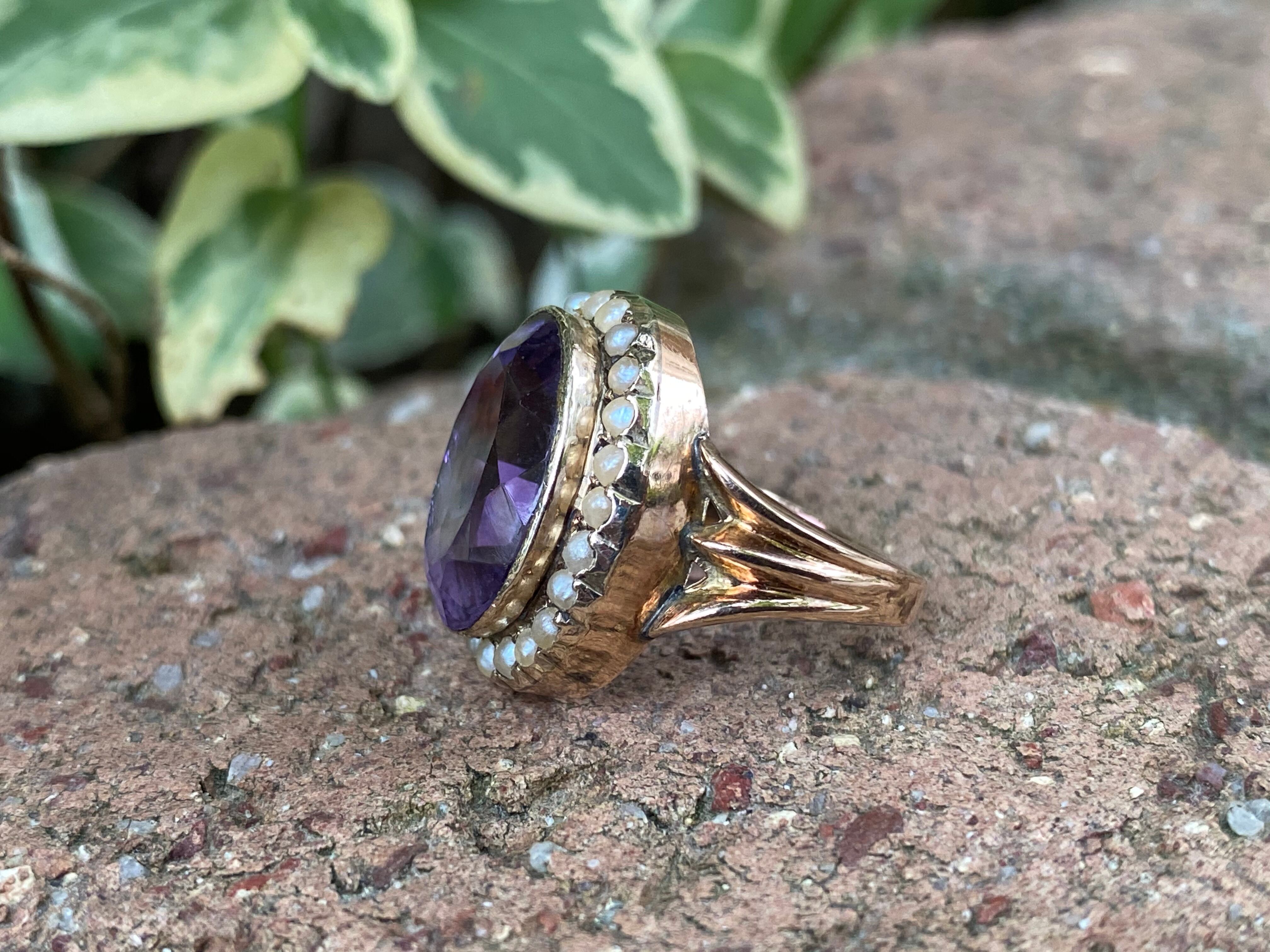 【国内発送】アメジスト & パール アンティーク クラスターリング