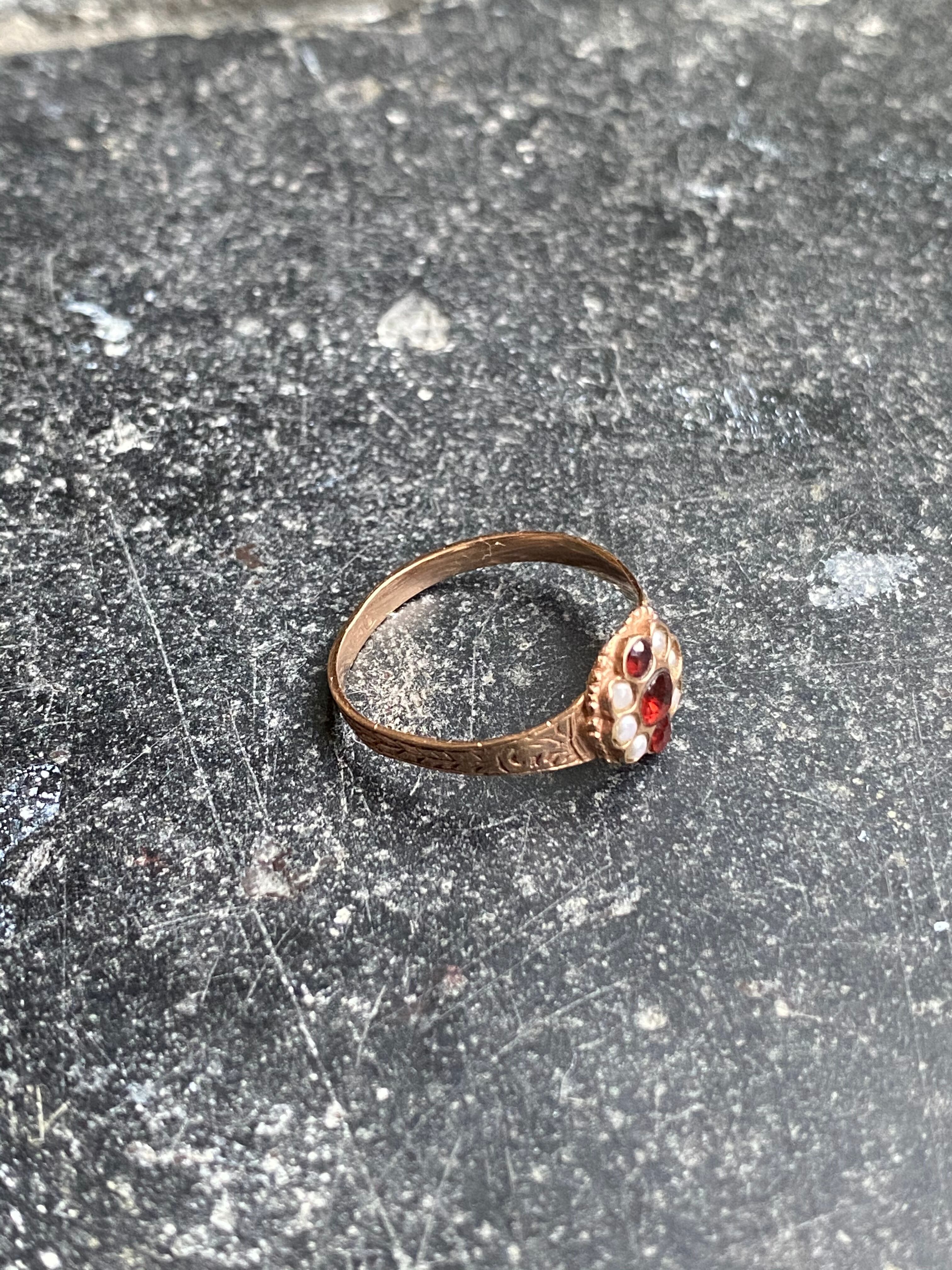 【国内発送】ヴィクトリアン ガーネット & パール リング