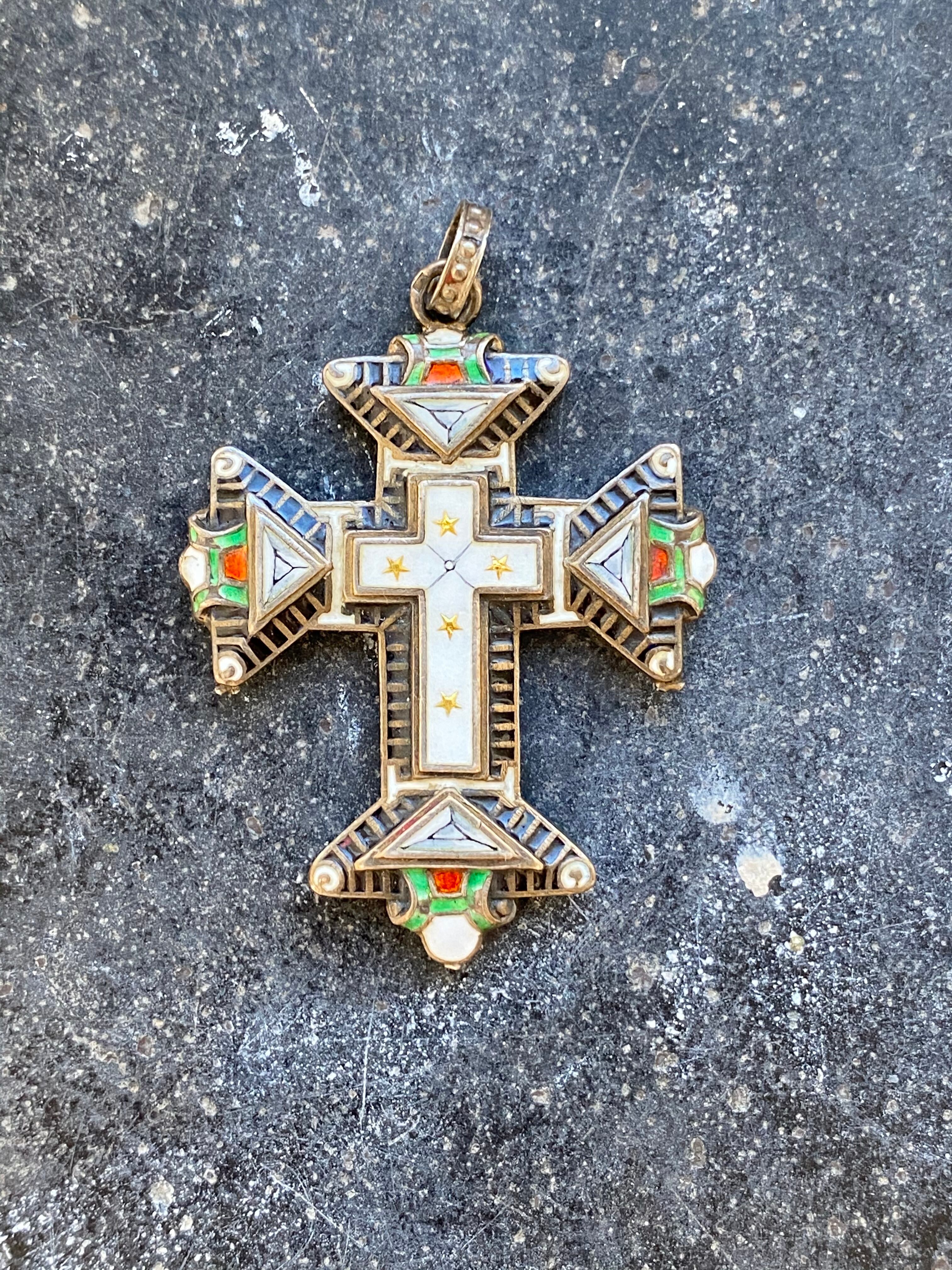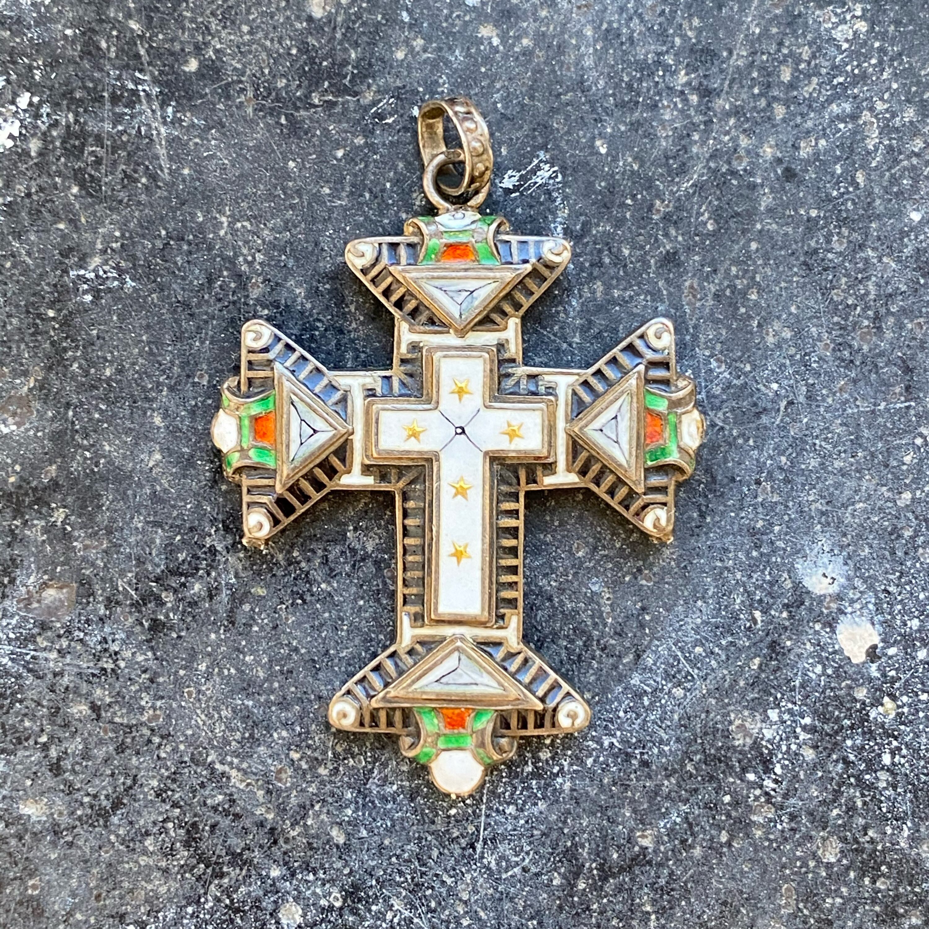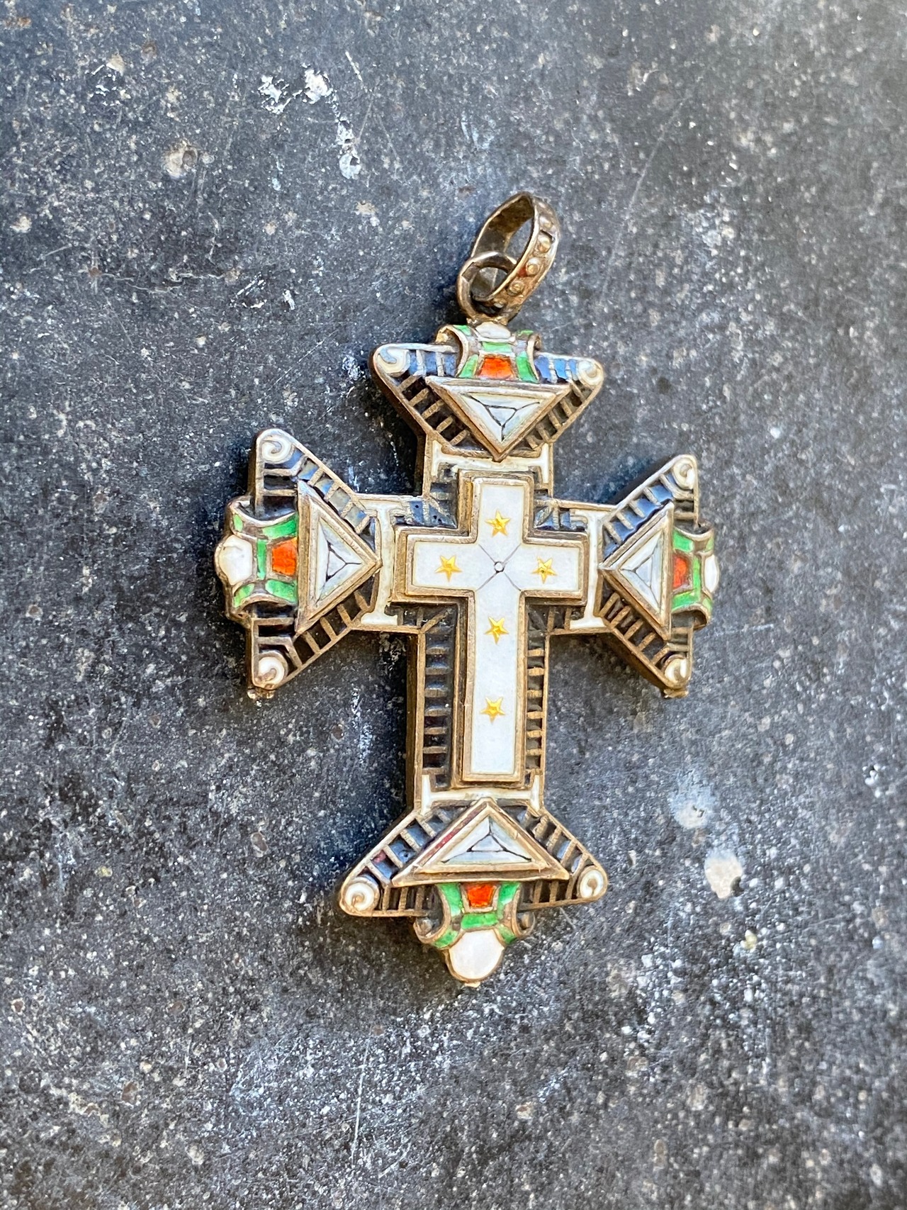 アンティーク シルバー & エナメル ルネッサンスリバイバル クロス