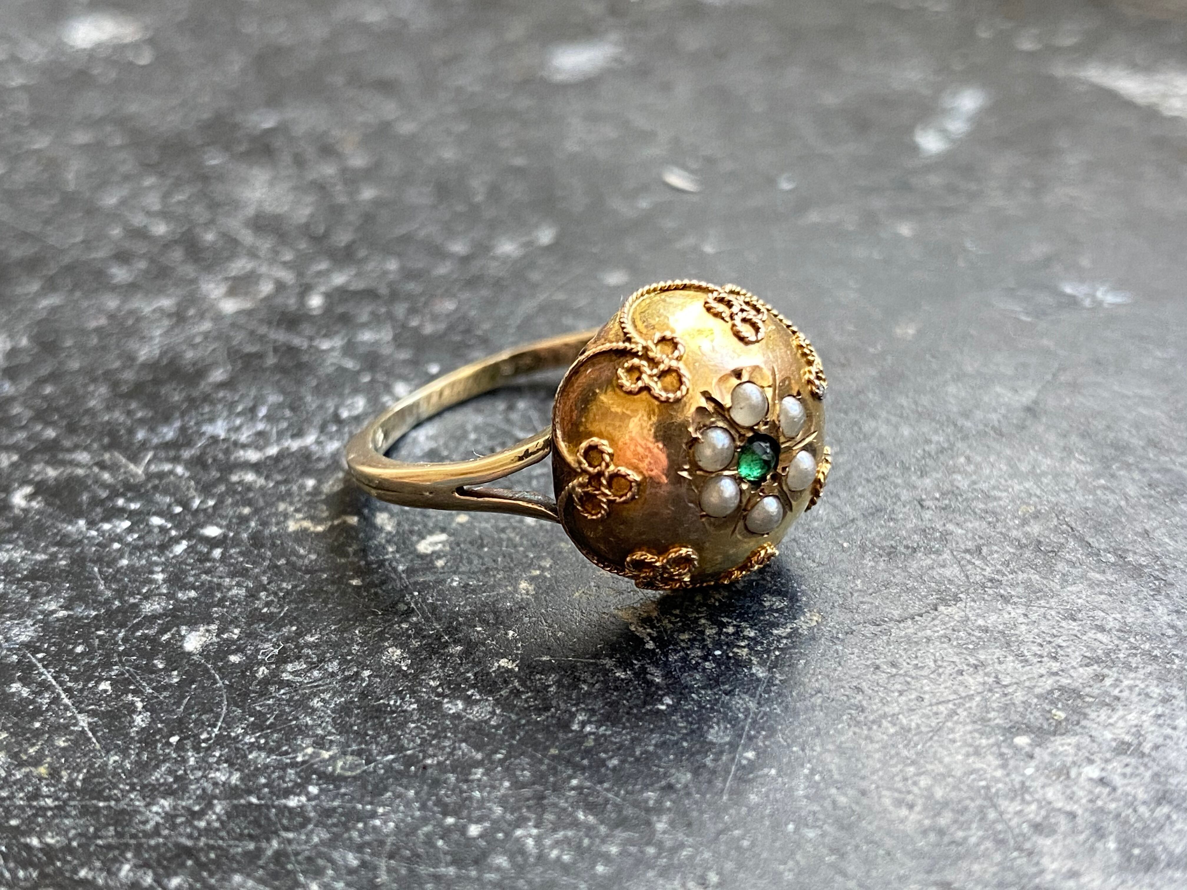 【国内発送】アンティーク エメラルド & パール フィリグリー ドーム リング