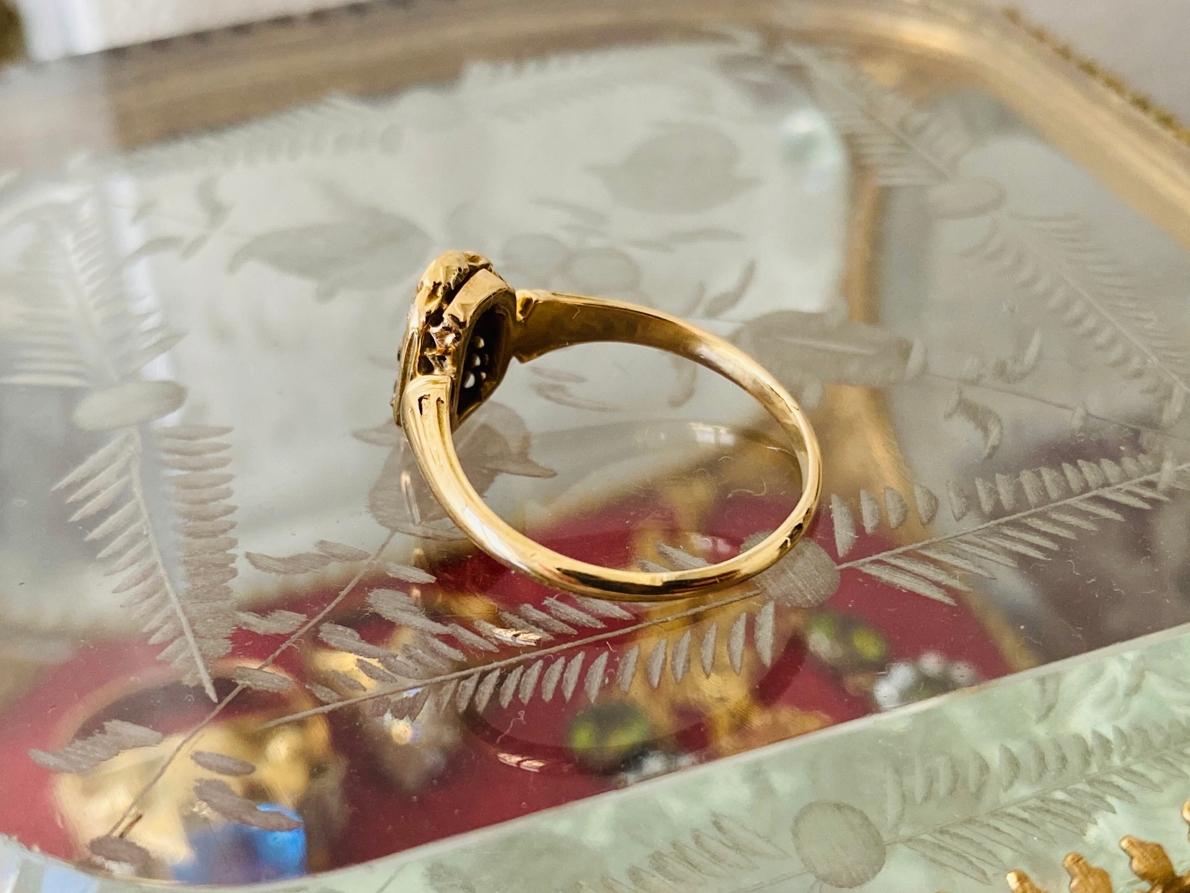 14石のローズカットダイヤモンドは歪なカタチが個性的で中心の石を挟みセンター全体に石がぎっしりと嵌め込まれています。