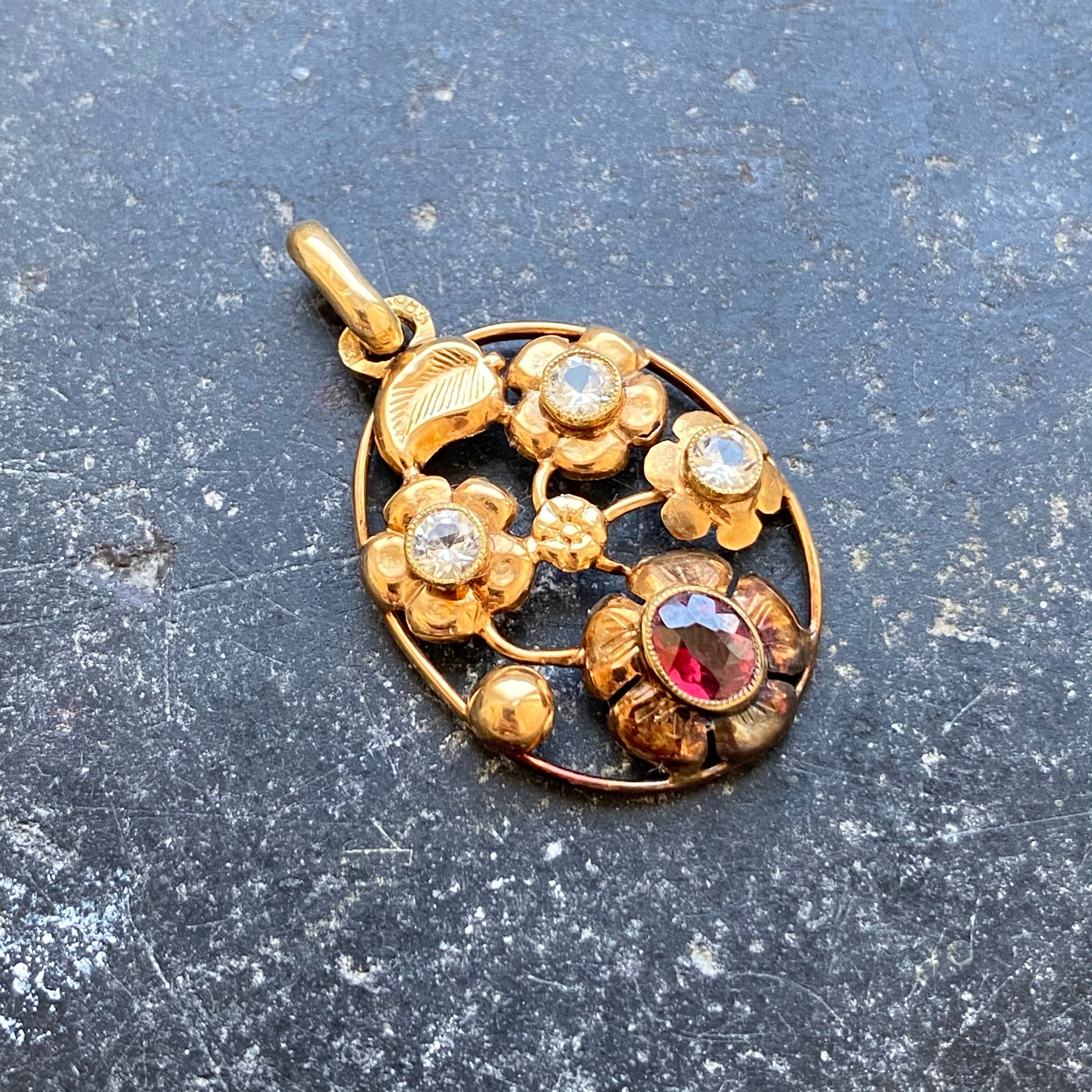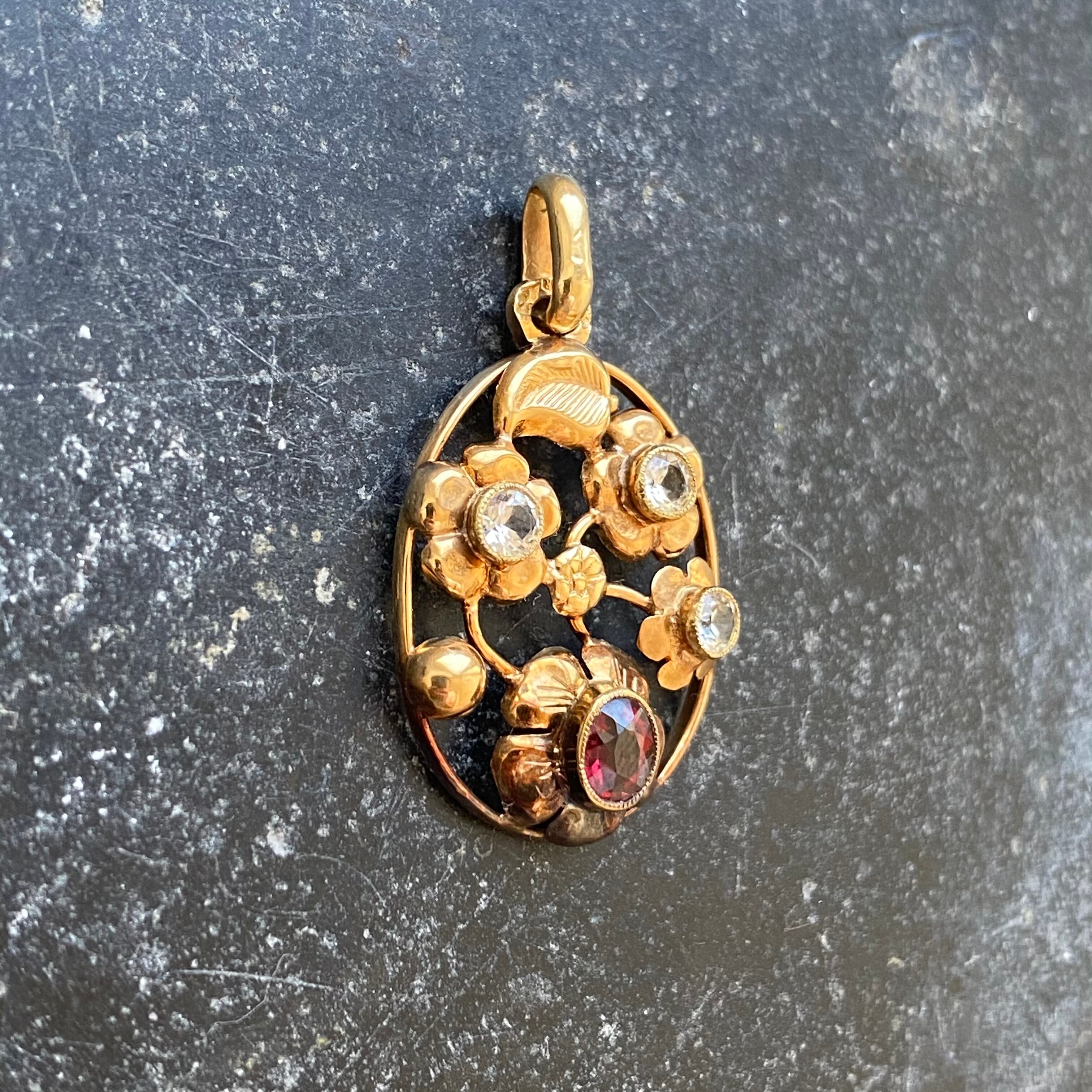 【国内発送】ガーネット&ジェムストーン ミル打ち ペンダントトップ