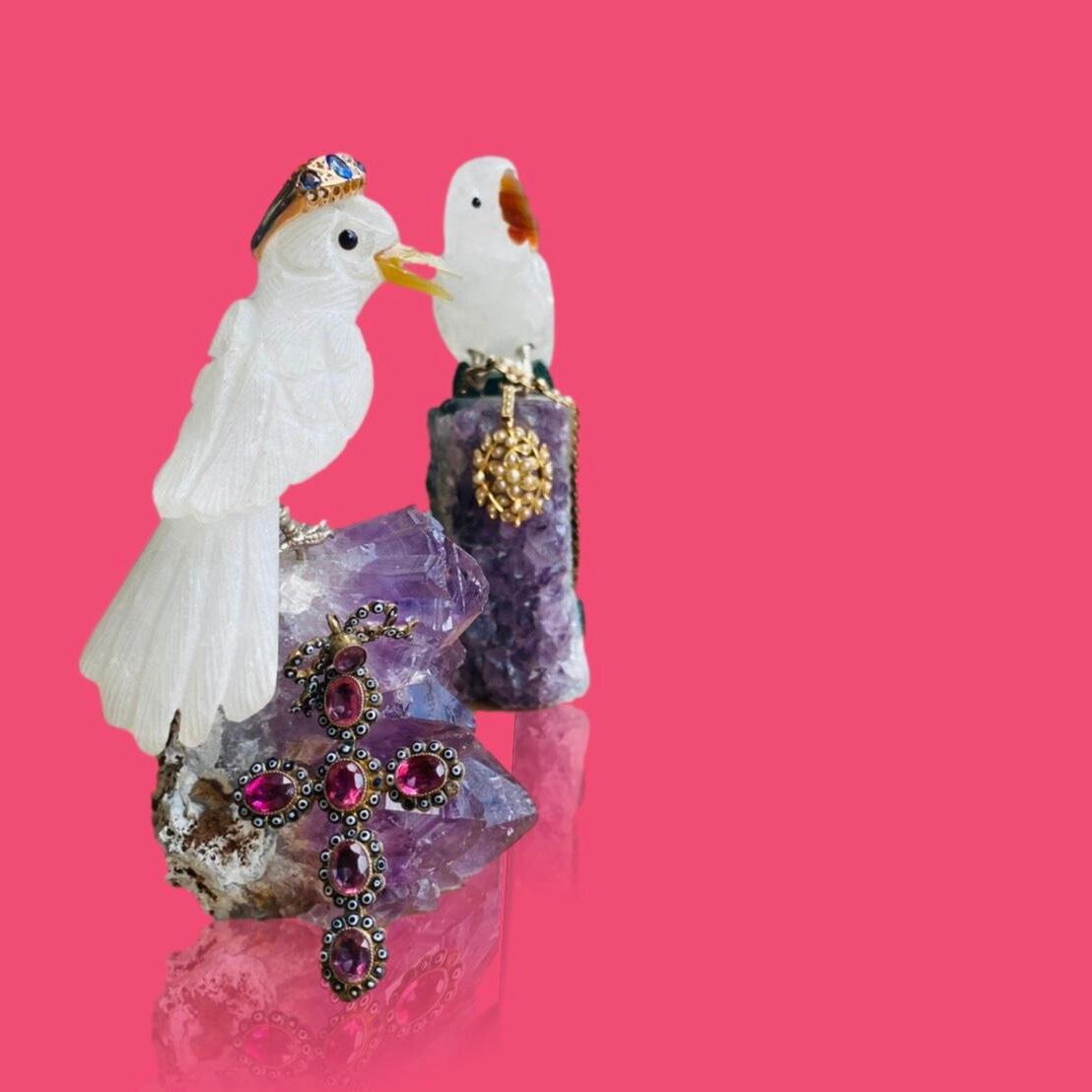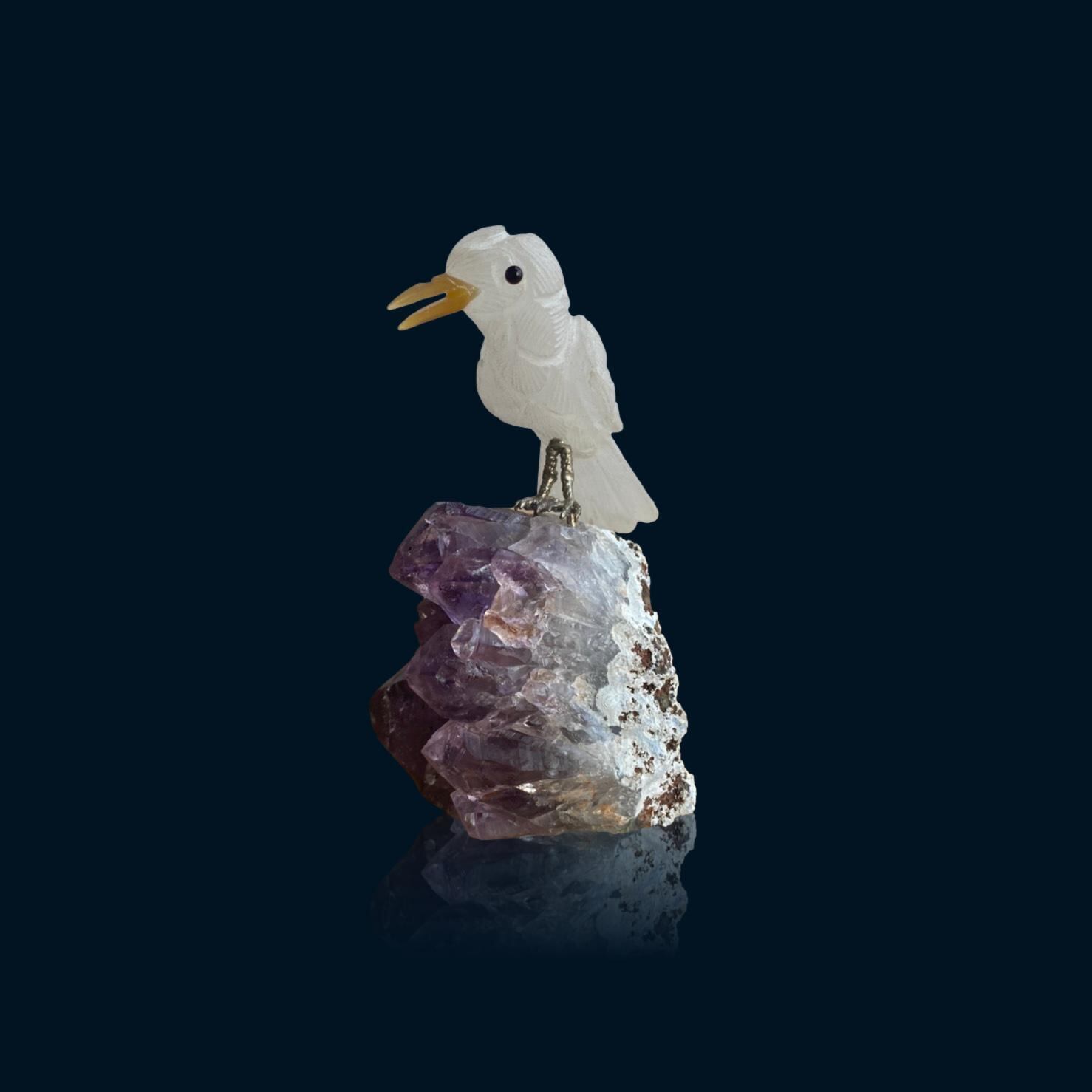 まん丸な小鳥の目が可愛らしく、くちばしは透き通った石で鳥の特徴をよく表現されています。