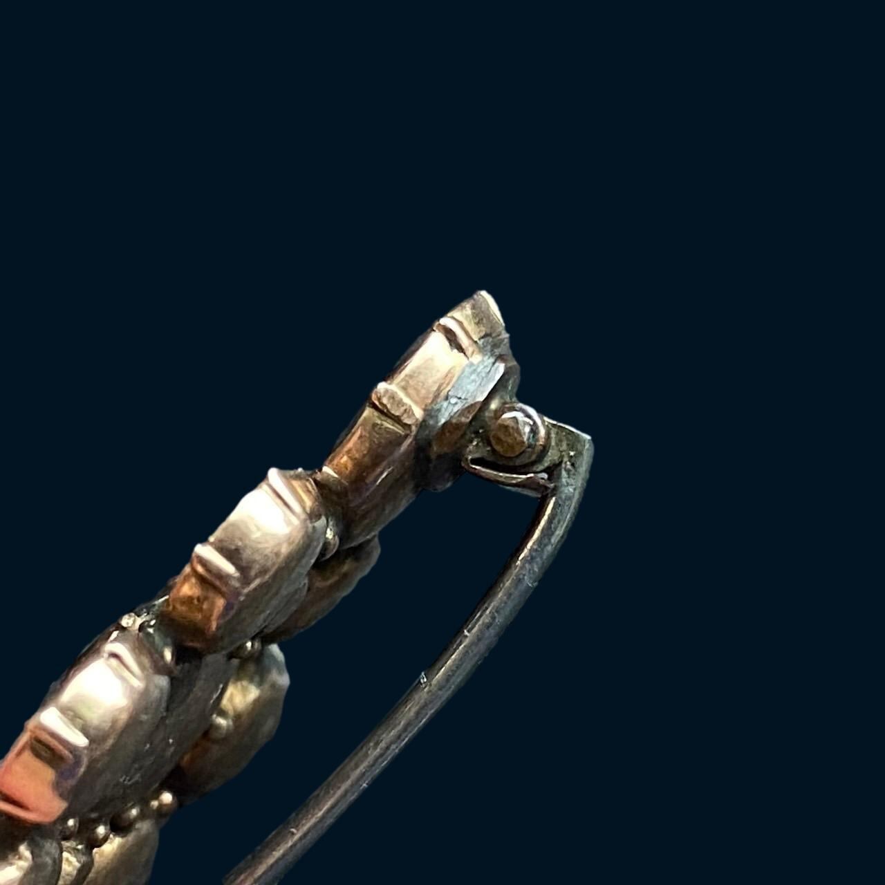 海外コレクターに人気のあるフラットカットのクロスブローチでフォイルバックというアンティークらしい技法でクローズドセッティングされています。こちらの技法により光をより反射して輝きを増します。19世紀の象徴のようなフラットカットはアメジスト、シトリンやガーネットに多く見られますが需要が高く高額で手に届かないことが多いジュエリーです。