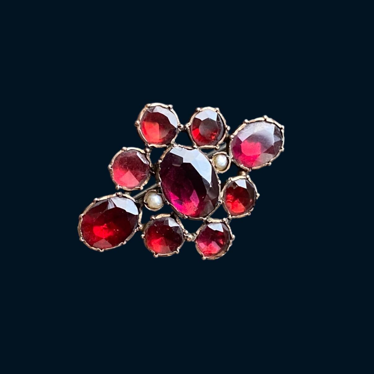 【国内発送】英国 アンティーク フラットカット ガーネット ブローチ