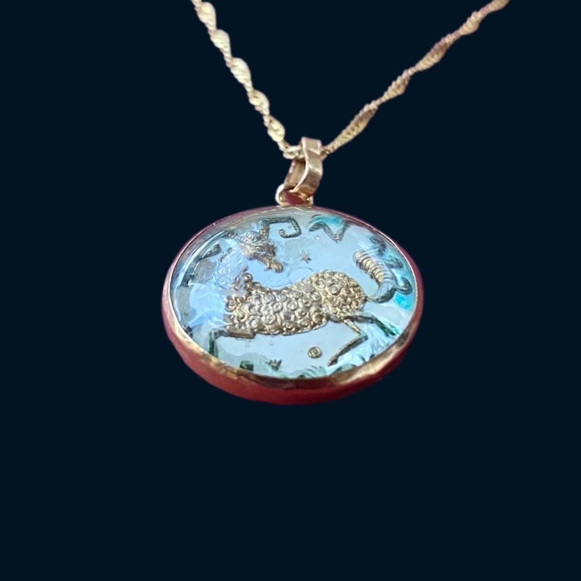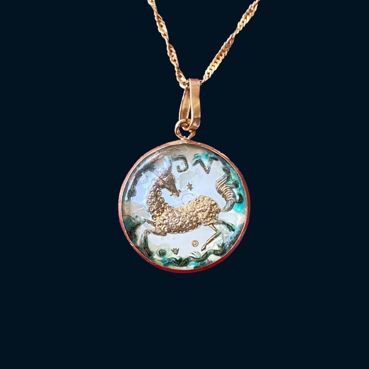 題材は牡羊座をハンドペイントで描かれているものでエセックスクリスタルの影響を受けて制作されたようです。落ち着きのある色合いで神秘的な仕上がりです。
