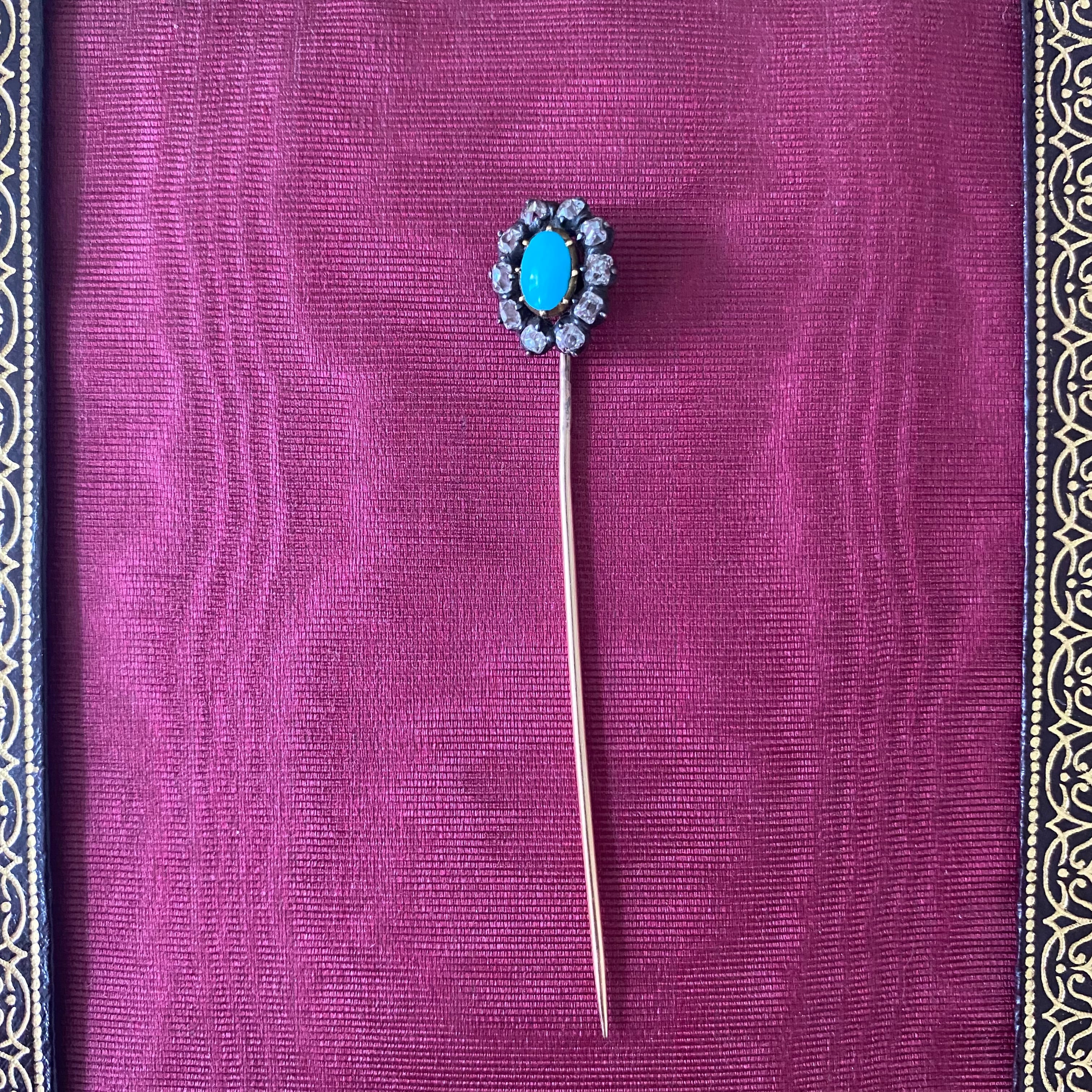 オールドマインカット ダイヤモンド & ターコイズ ハットピン