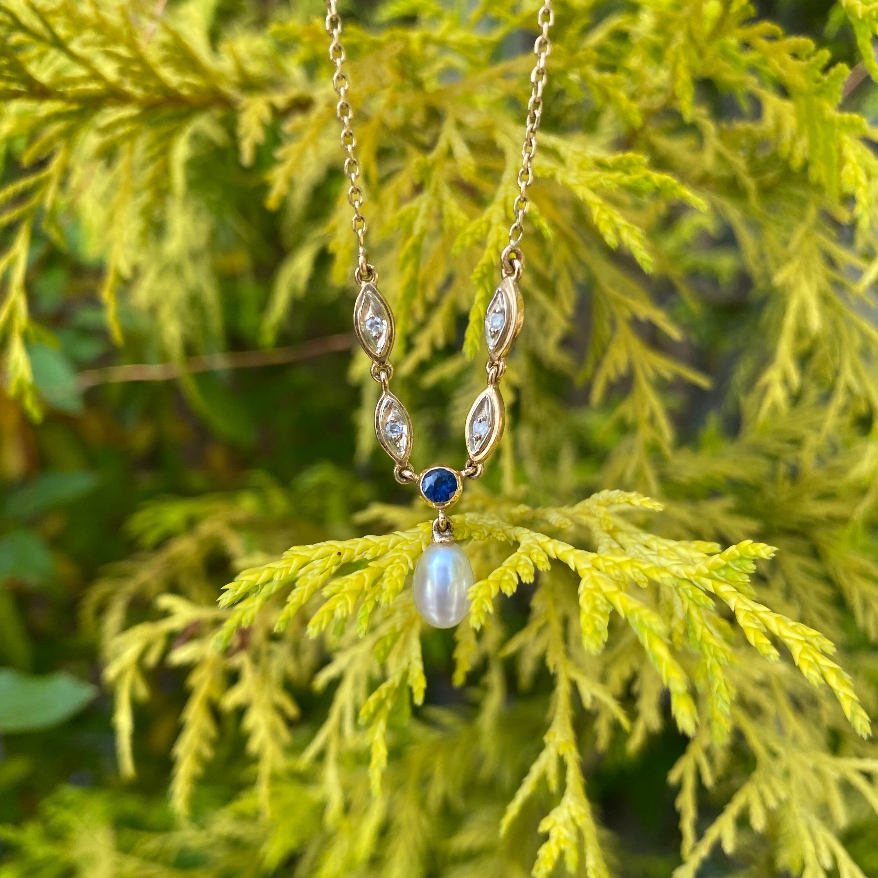 【国内発送】サファイア & パール ネックレス