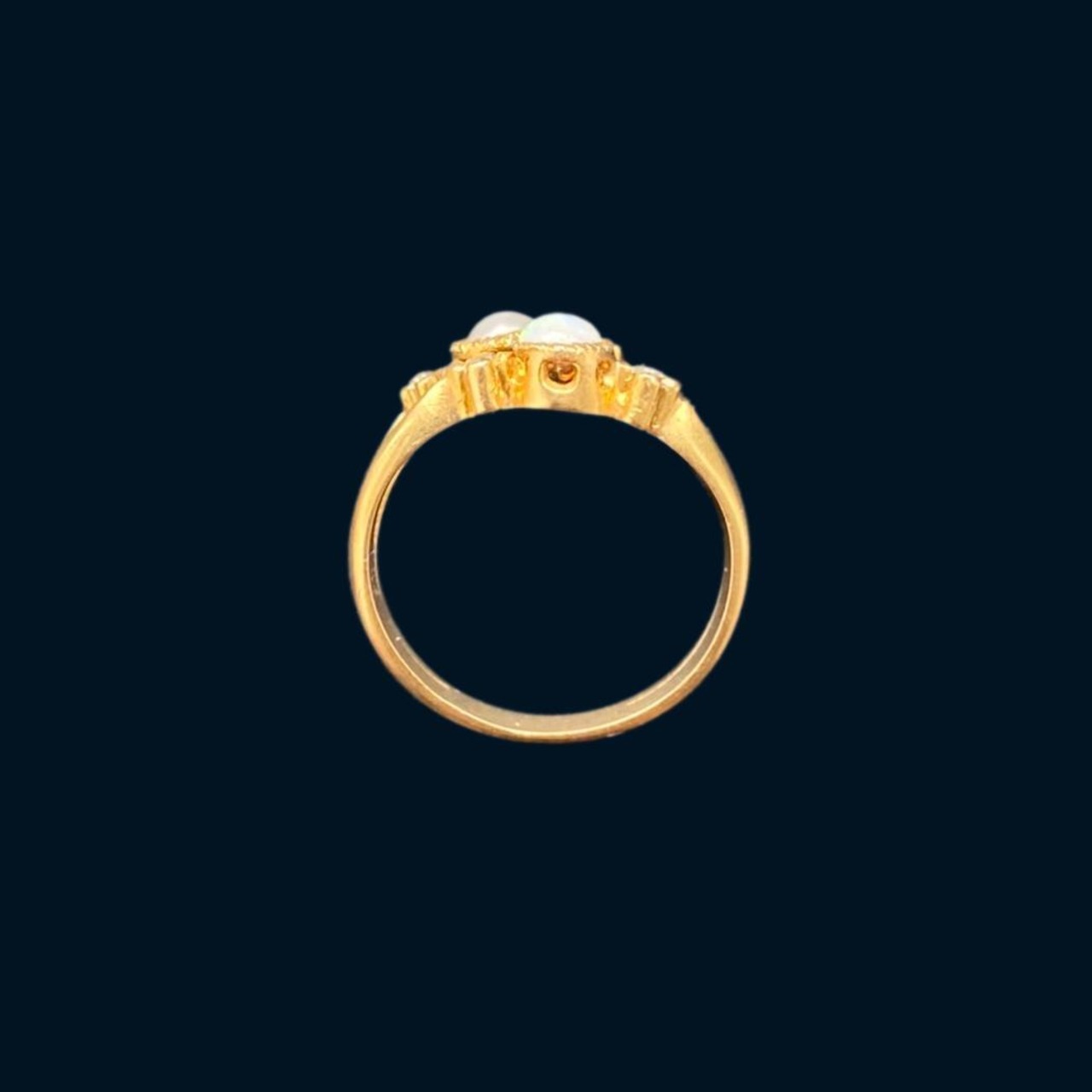 2連繋がったリングはパール&オパールを両サイドに黄金のクローバーが包まれています。