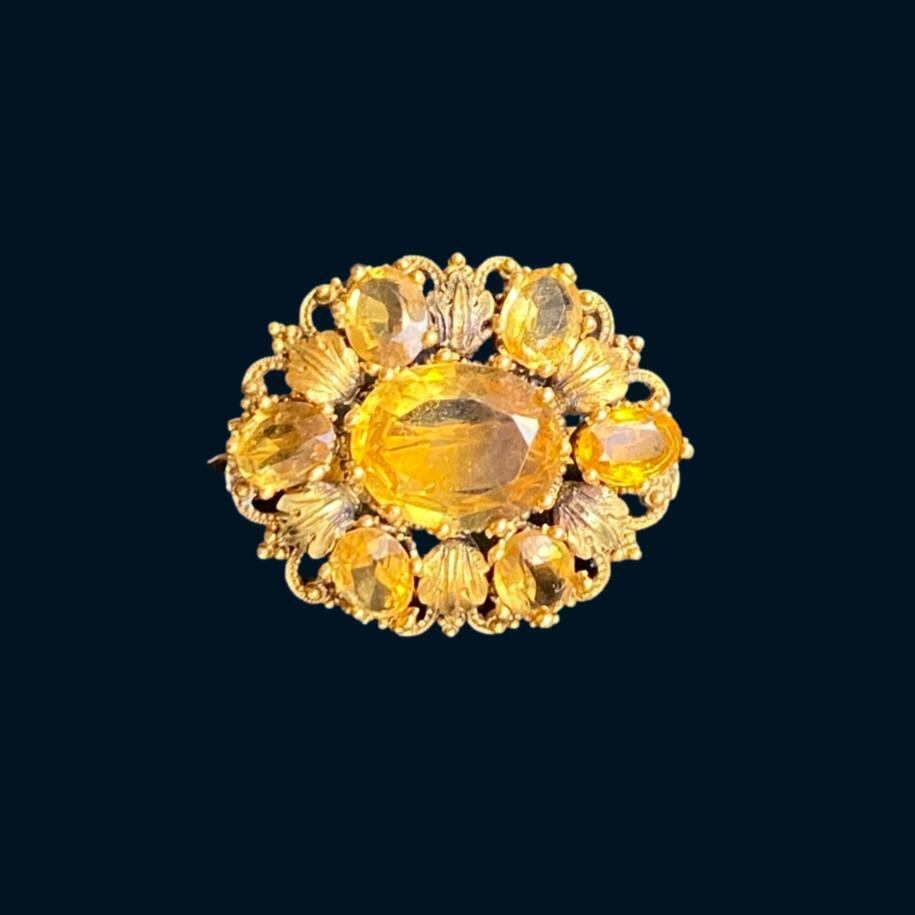 アンティーク大粒シトリンブローチ