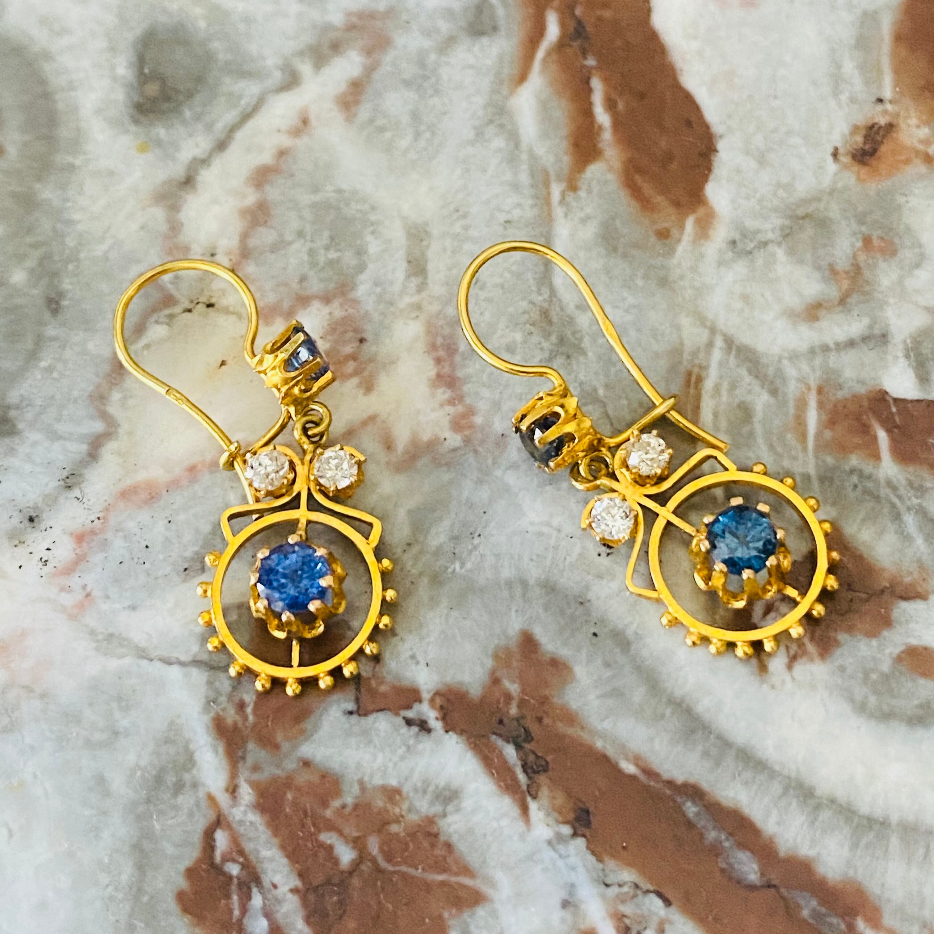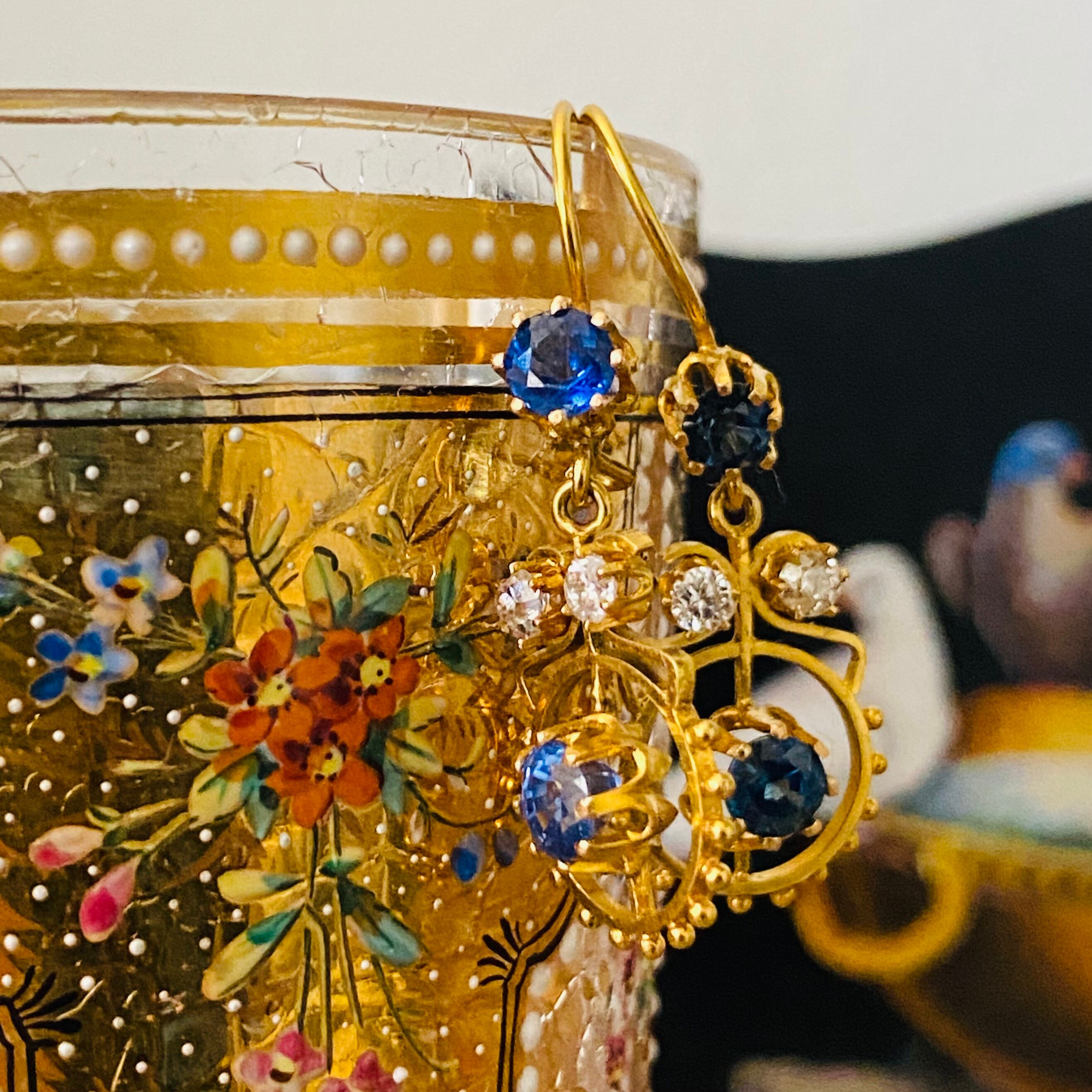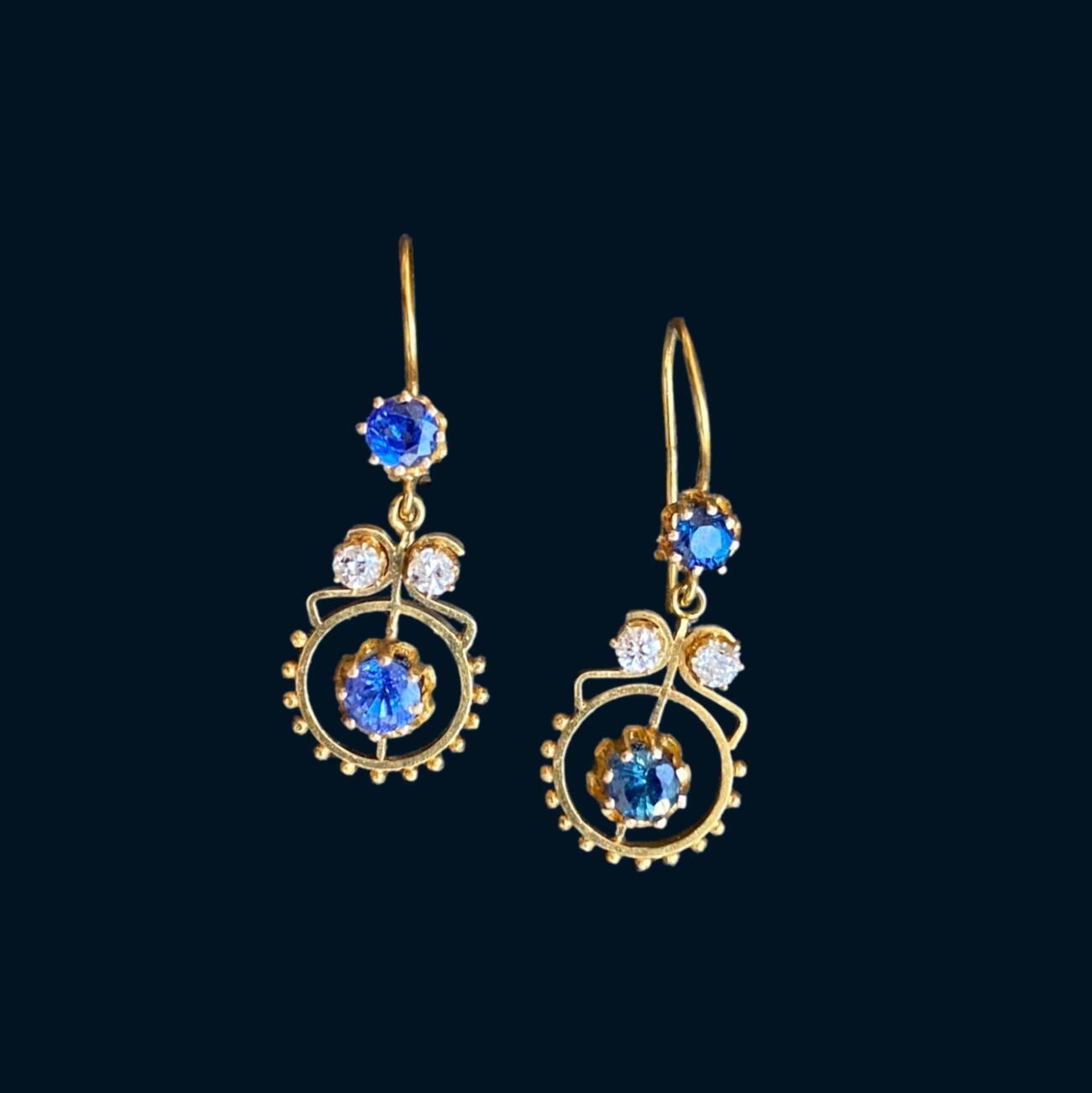 サファイヤ & ダイヤモンド ヴィンテージ イヤリング