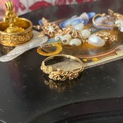 アームは細身ですが複雑かつ丁寧に彫金で植物を表現されて着用感覚は華奢ですがさりげなく手元を華やかにしてくれ他との相性も抜群です。