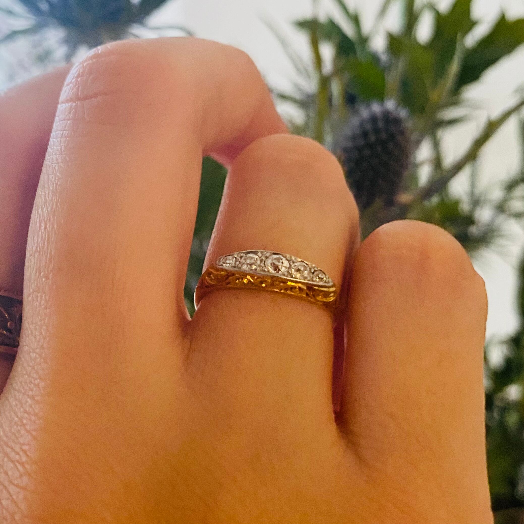 デザインが豊富な今回のファイブストーンはオールドヨーロピアンカットダイヤモンドがセットされています。