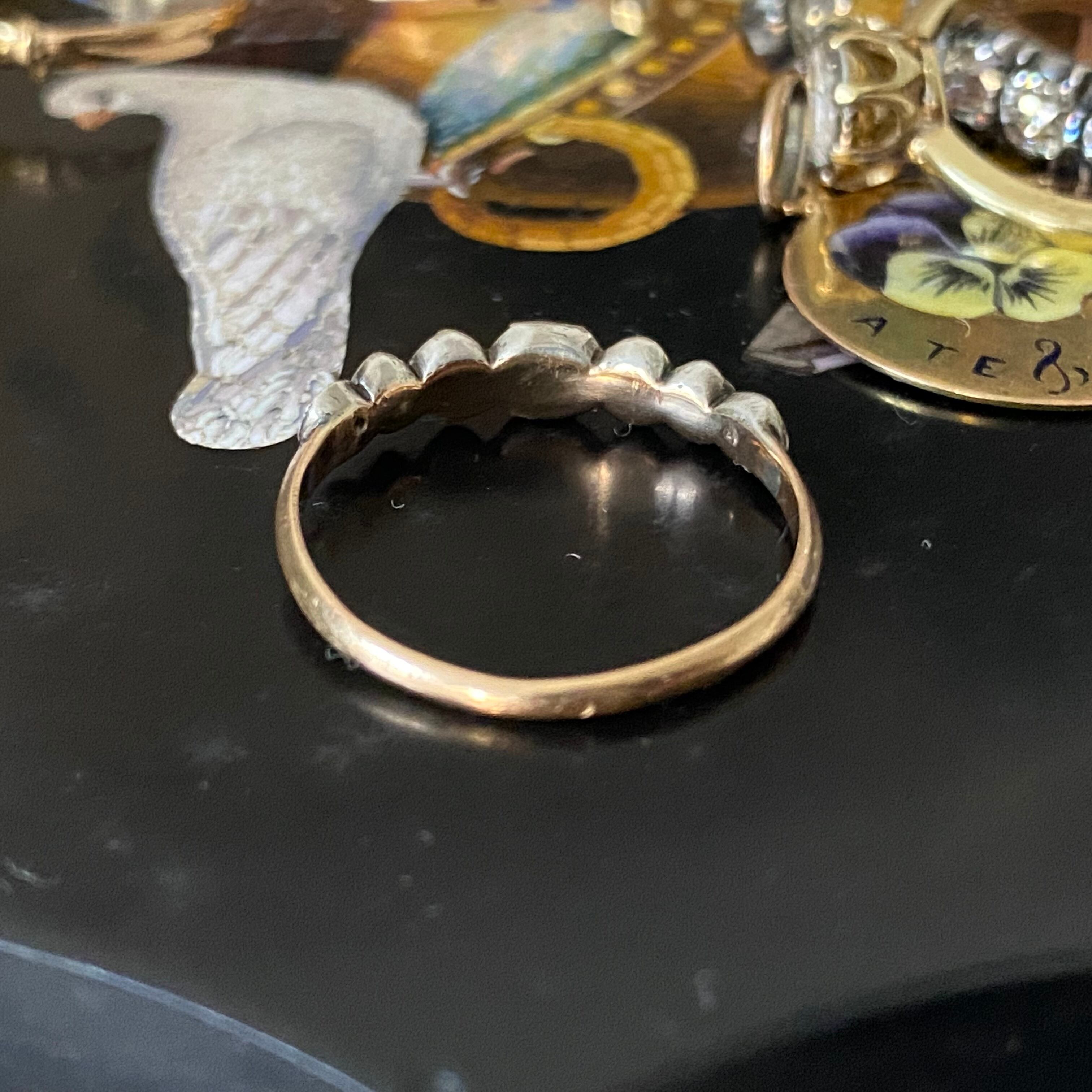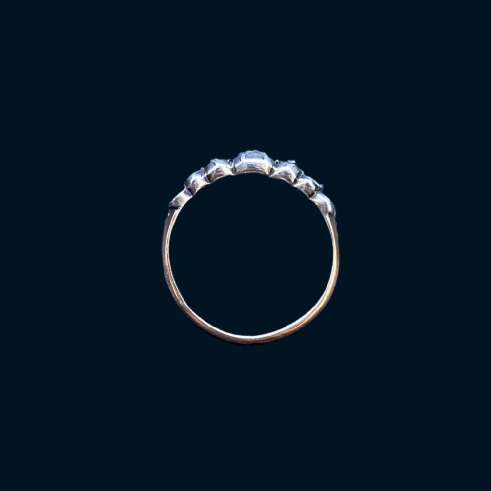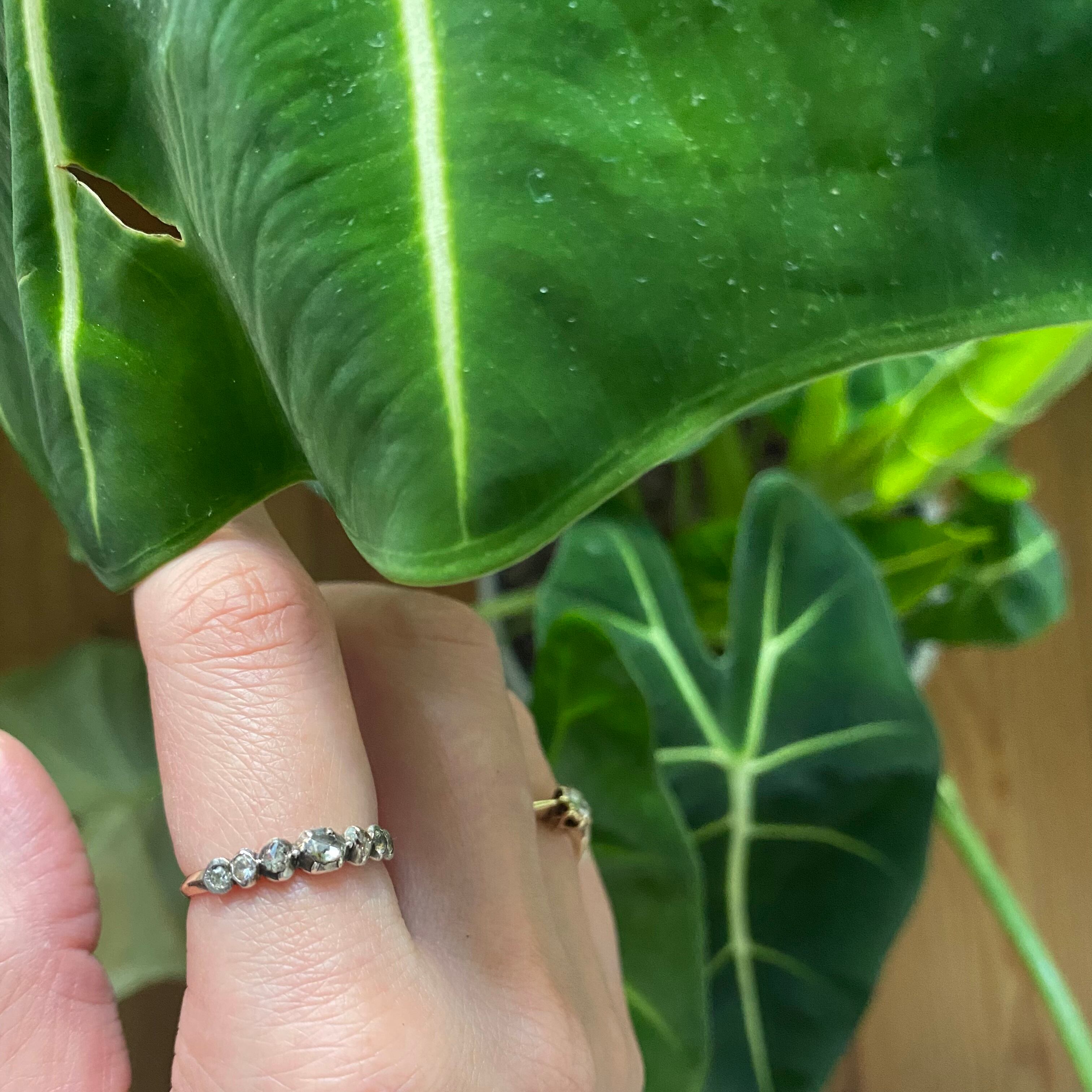 歪な形状のローズカットダイヤモンドが細身のリングに星屑のようにセットされ、アクセントにもなり他のリングとも合わせやすい一品です。