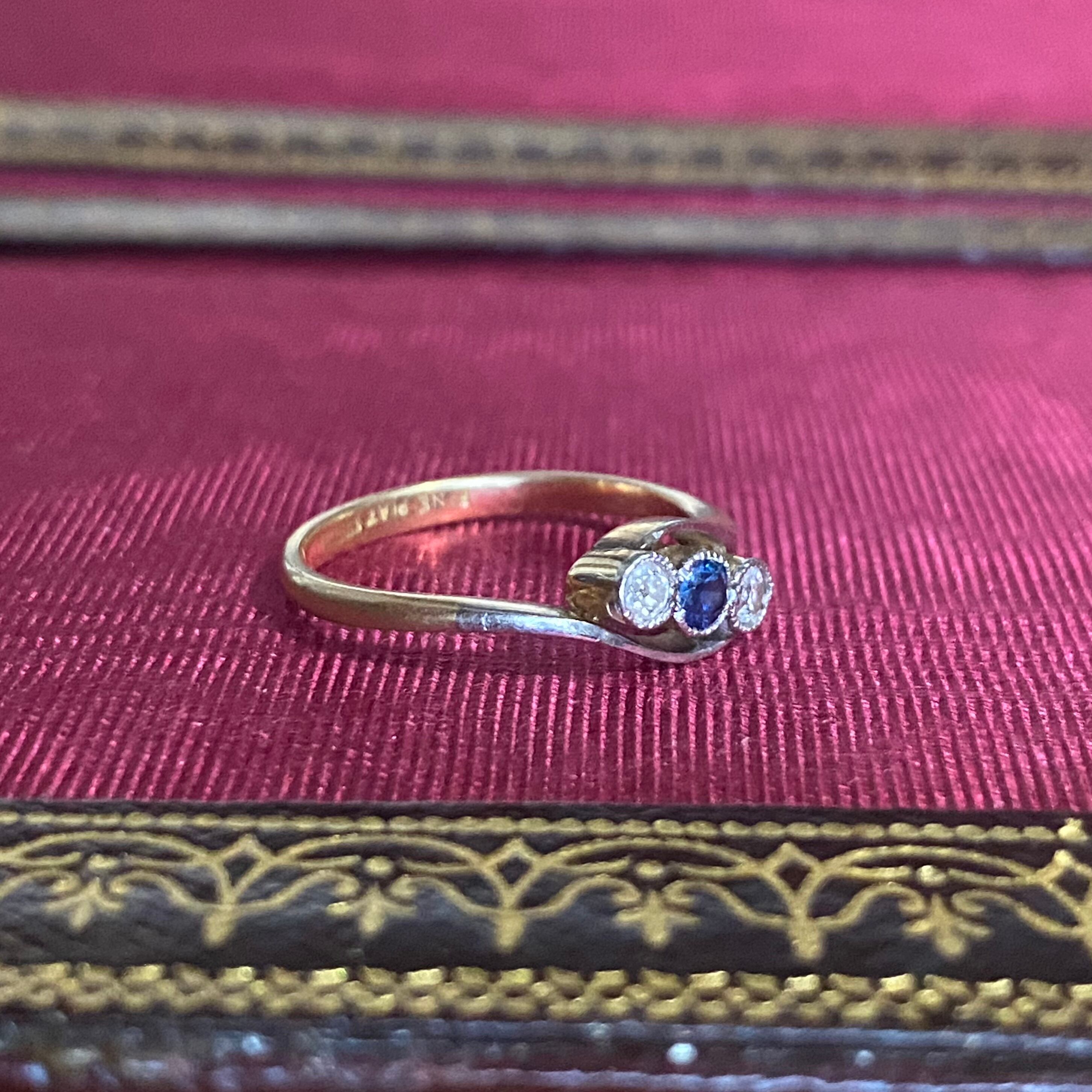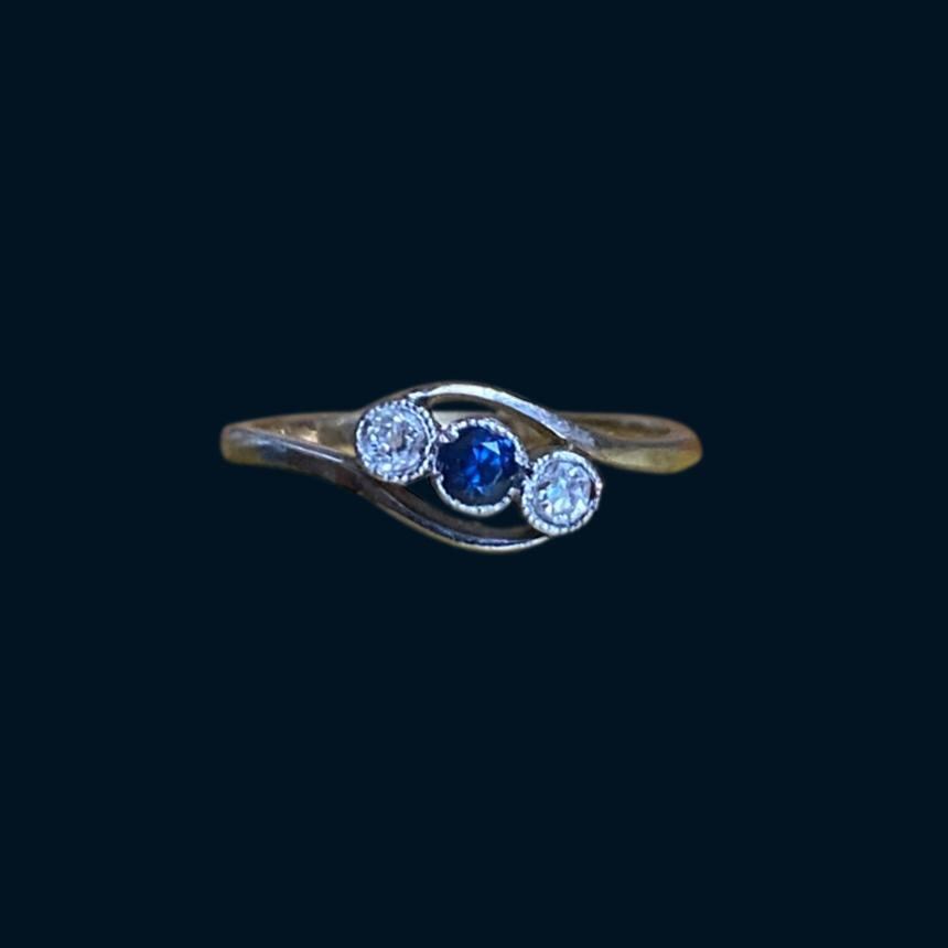 【国内発送】サファイア&ダイヤモンド スリーストーン リング