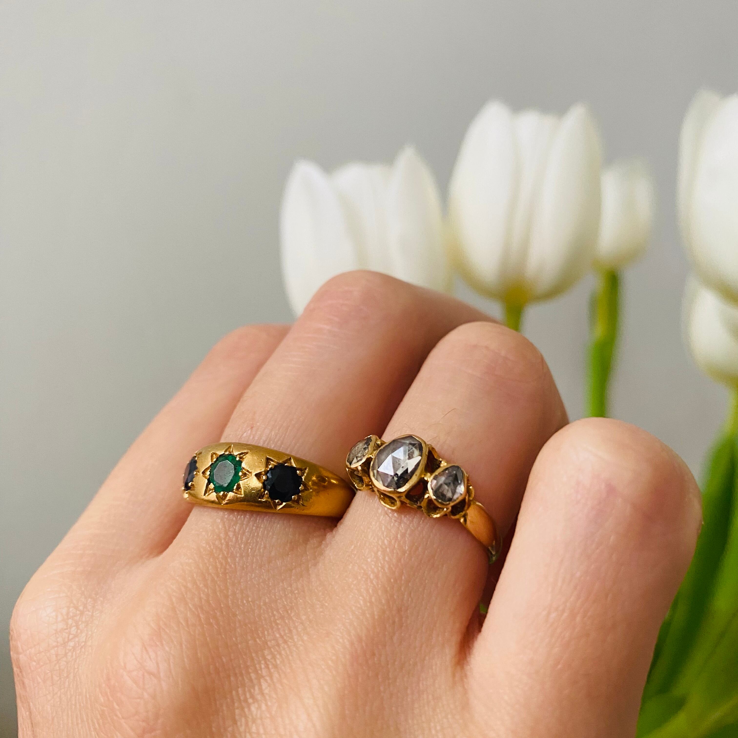 ダッチ ローズカット ダイヤモンド スリー ストーン リング