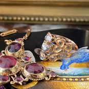 ジュエリーケースに並ぶアンティークリングたちの中でも一際輝きを放ち魅惑された逸品です。