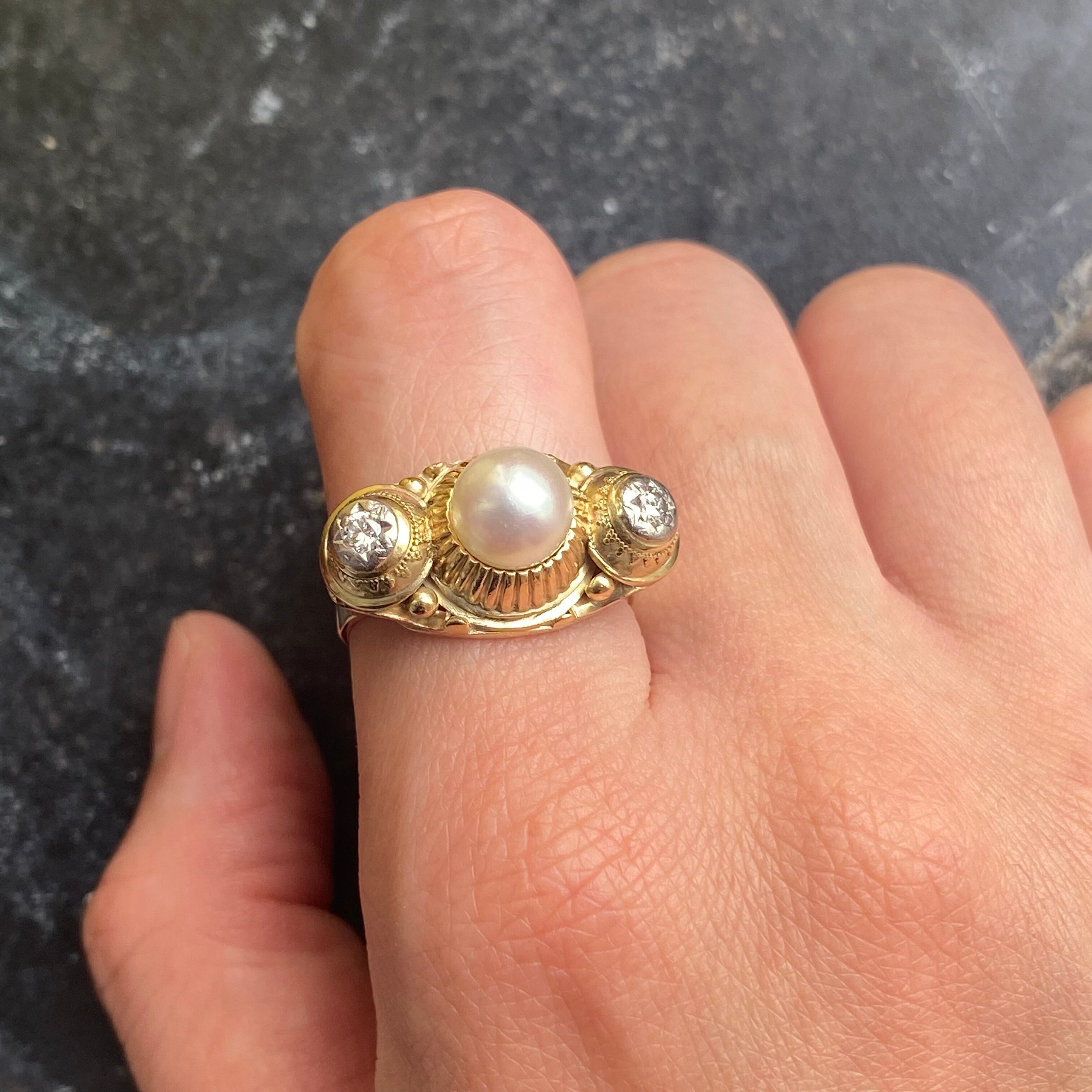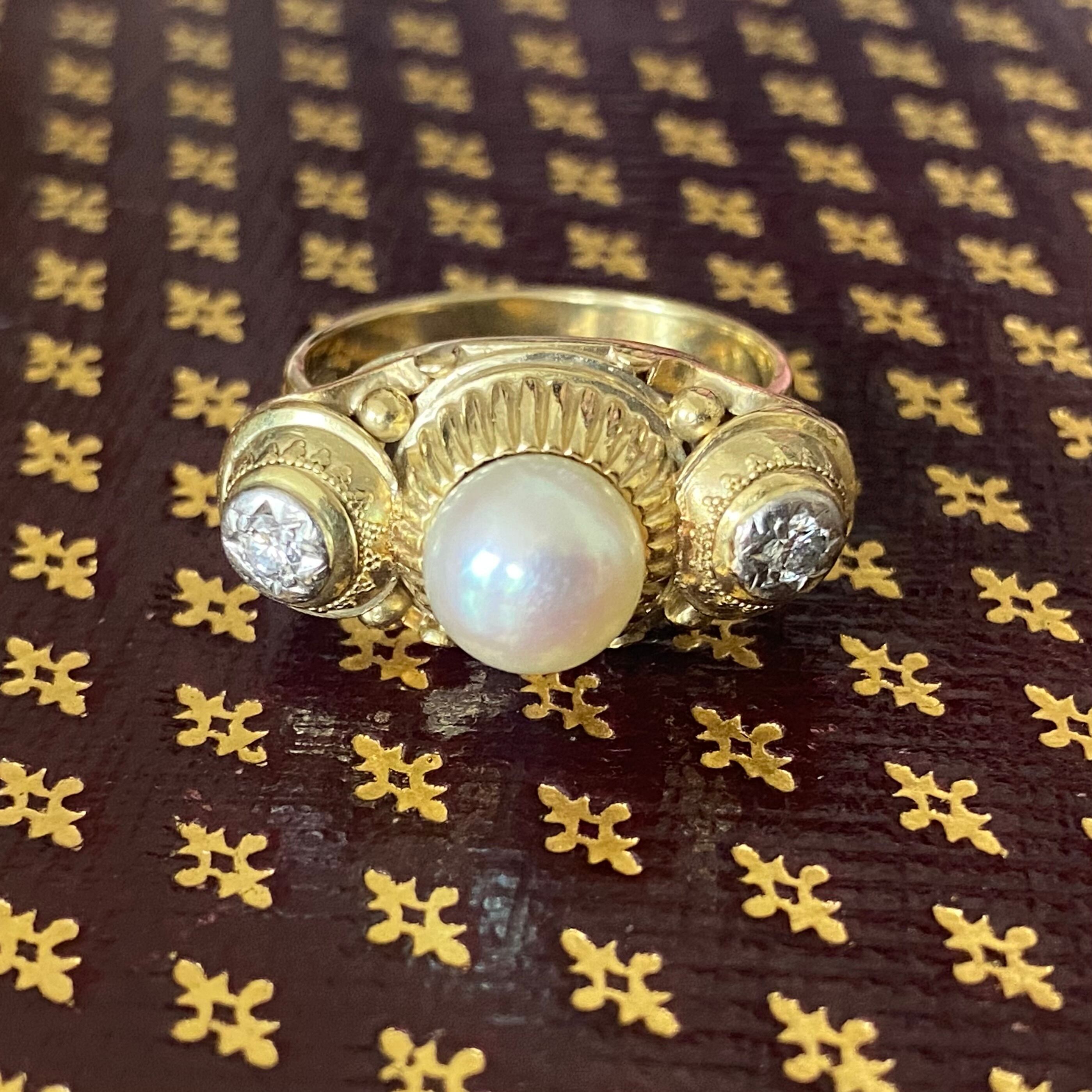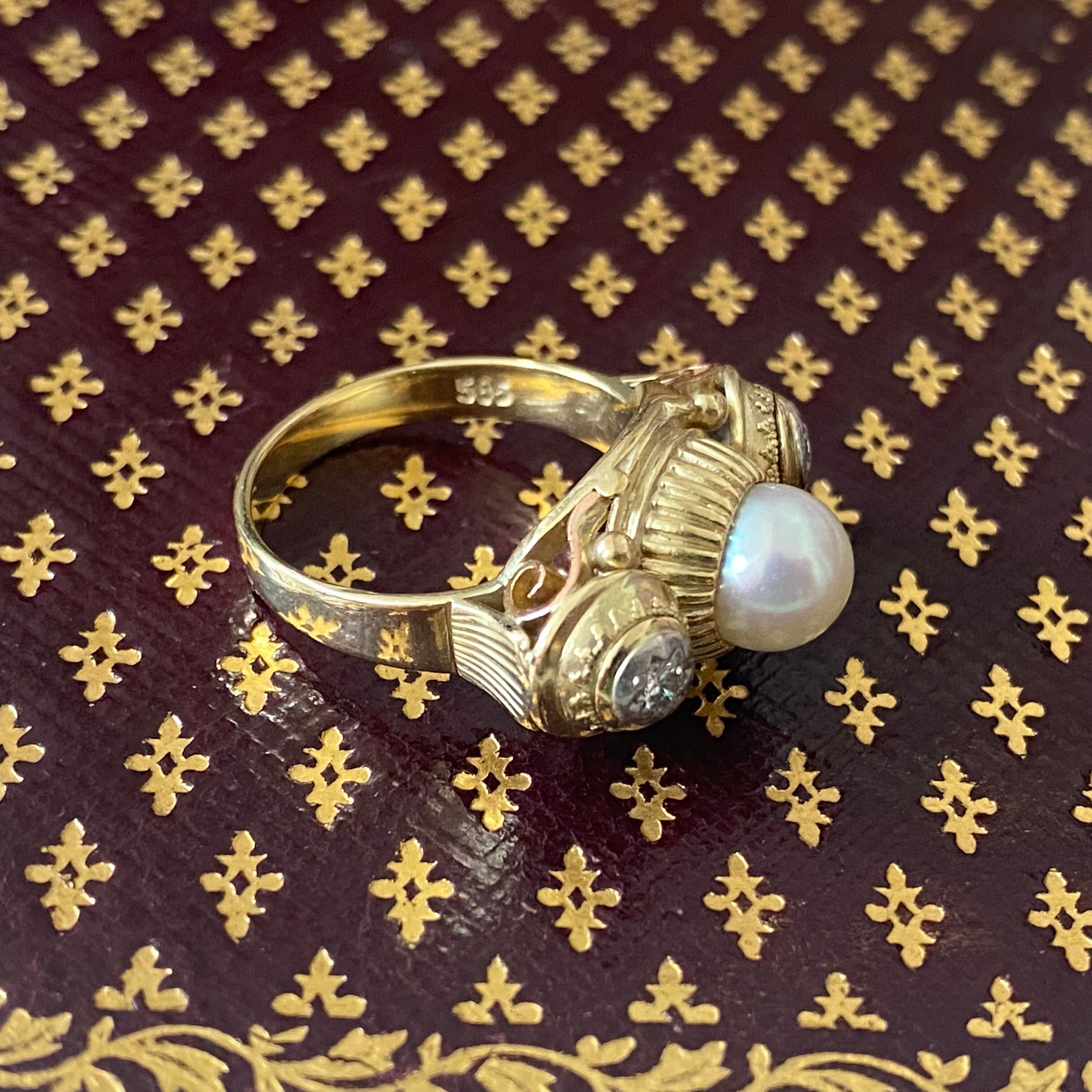 アールヌーボー パール & ダイヤモンド デコレーション リング