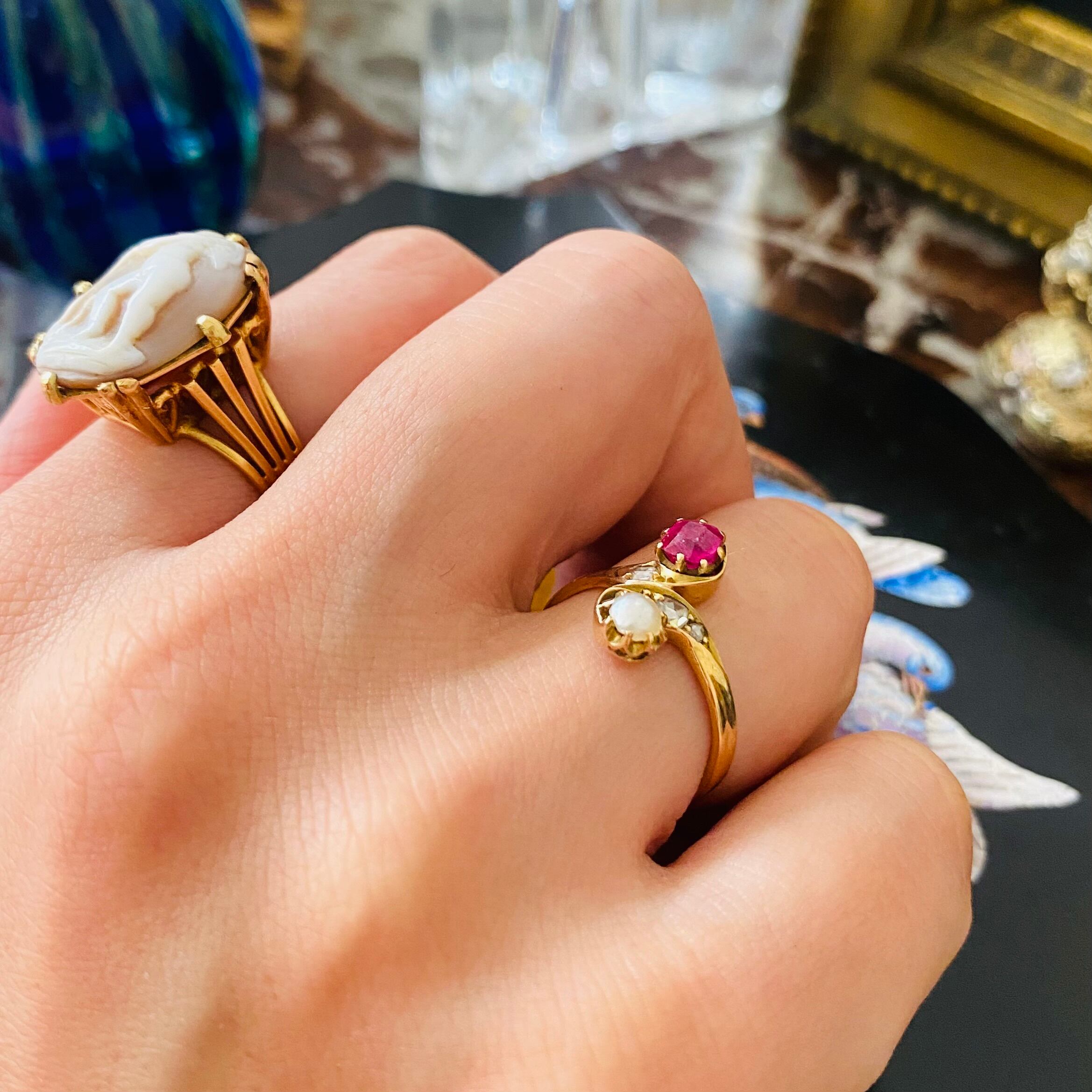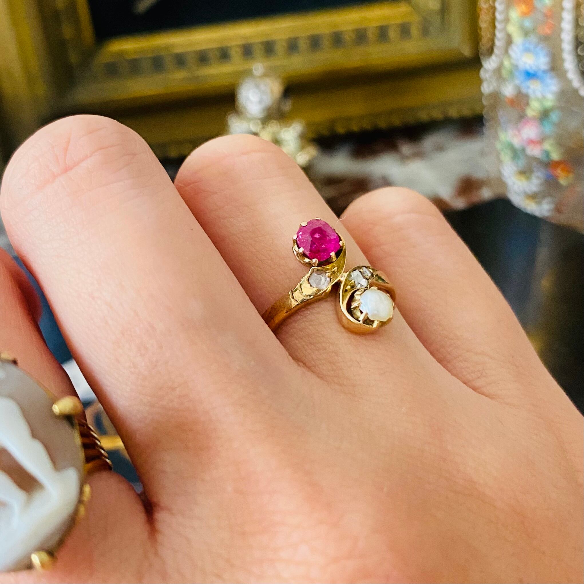 アンティーク ルビー & パール リング