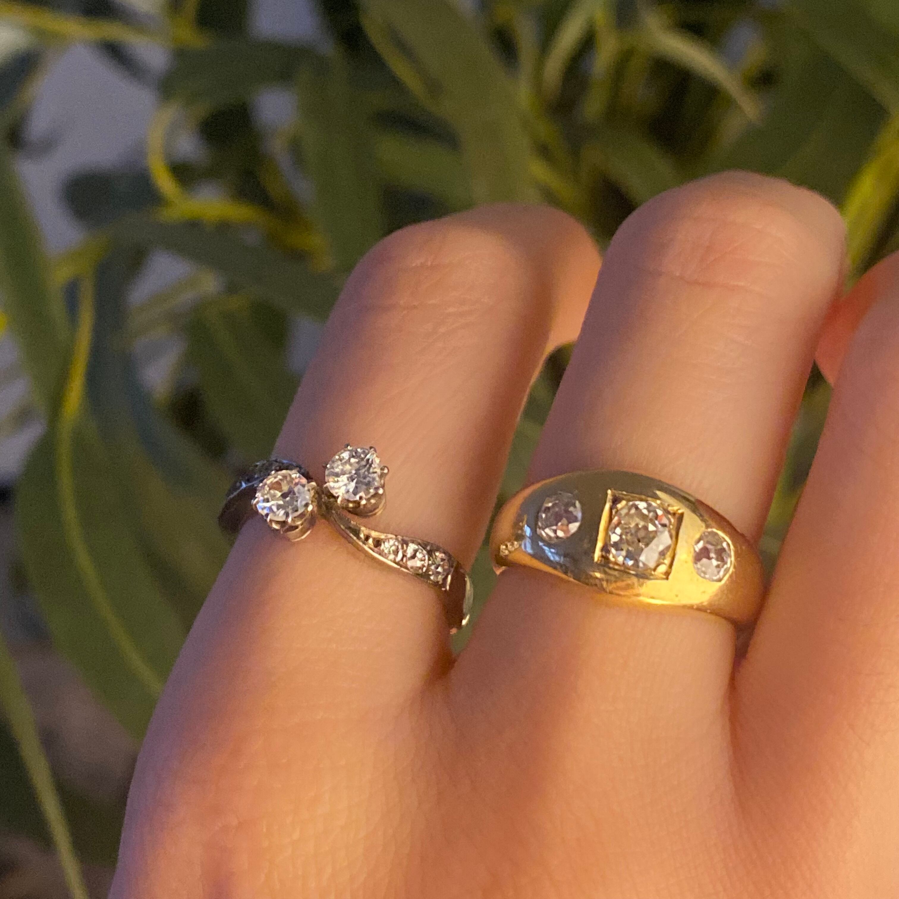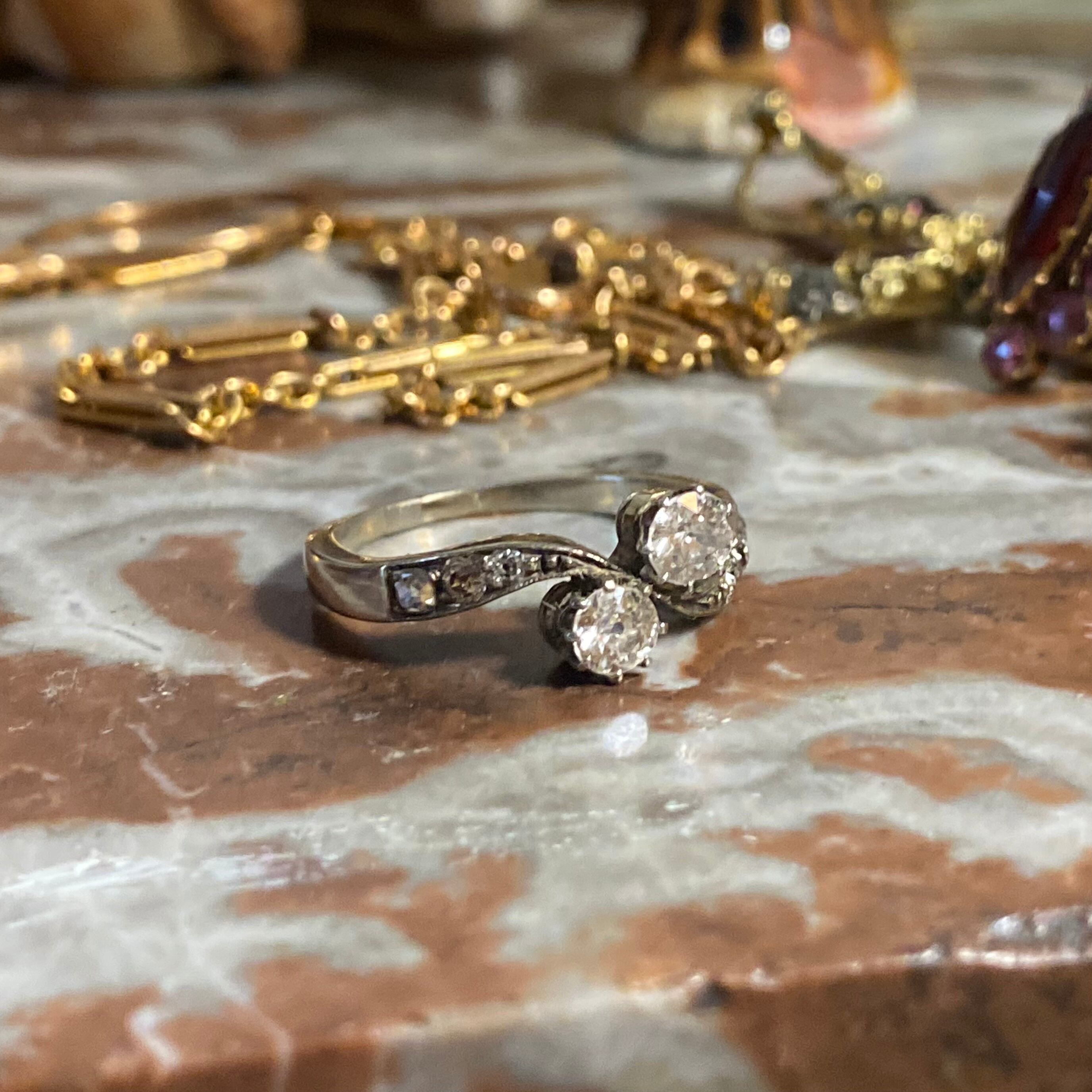 大粒 オールド ヨーロピアンカット トワ・エ・モア リング
