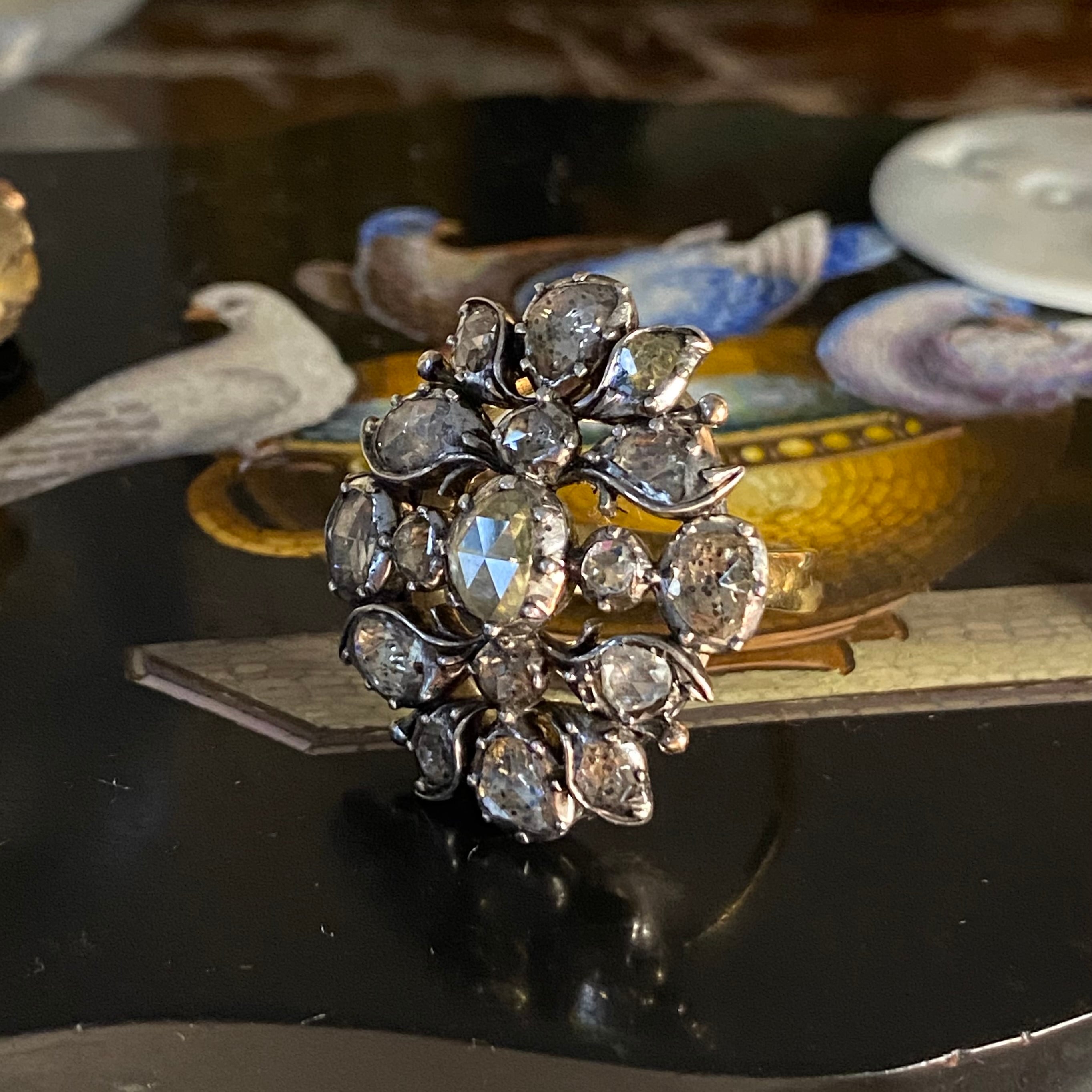 こちらのフェイスは18世紀にネックレスなどもっと大きなジュエリーの一部に使用されていたものを19世紀頃にリングへリメイクされたと思われます。