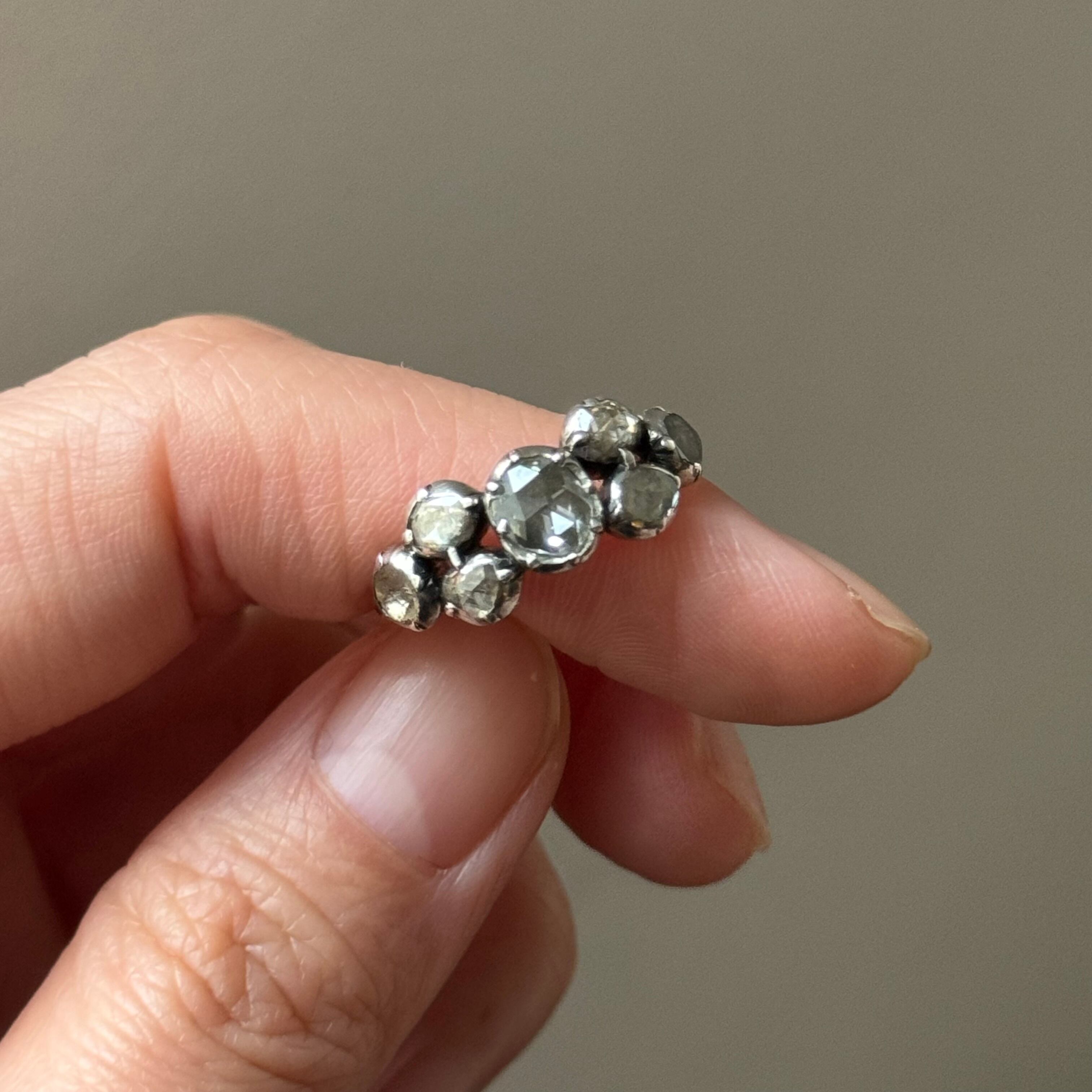 アンティークジュエリーに携わるにつれ、古い品に触れたいという想いからご縁のあった逸品です。古いほど現行のダイヤモンドにはない神秘的な輝きを放ちずっと見入ってしまうほど魅了されます。