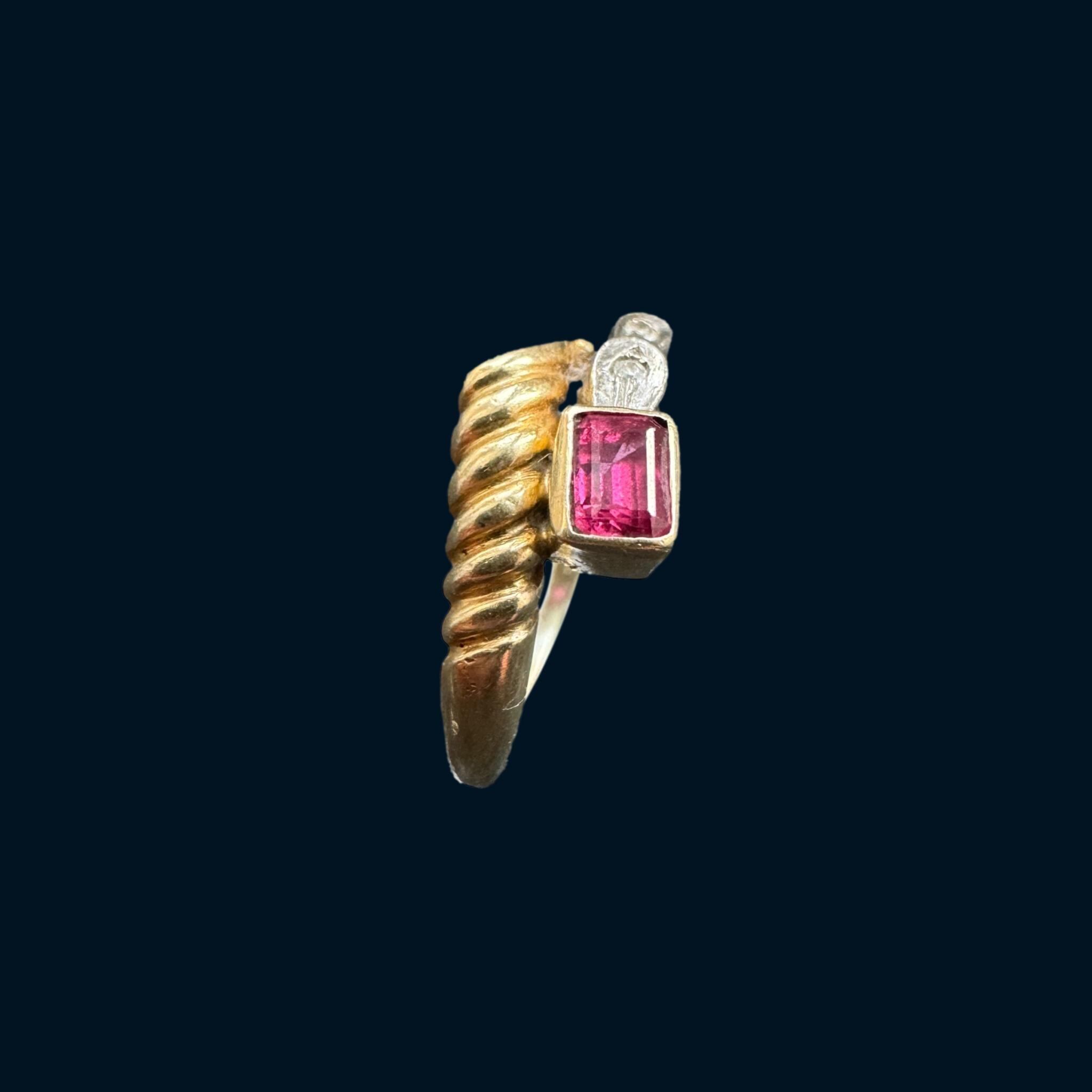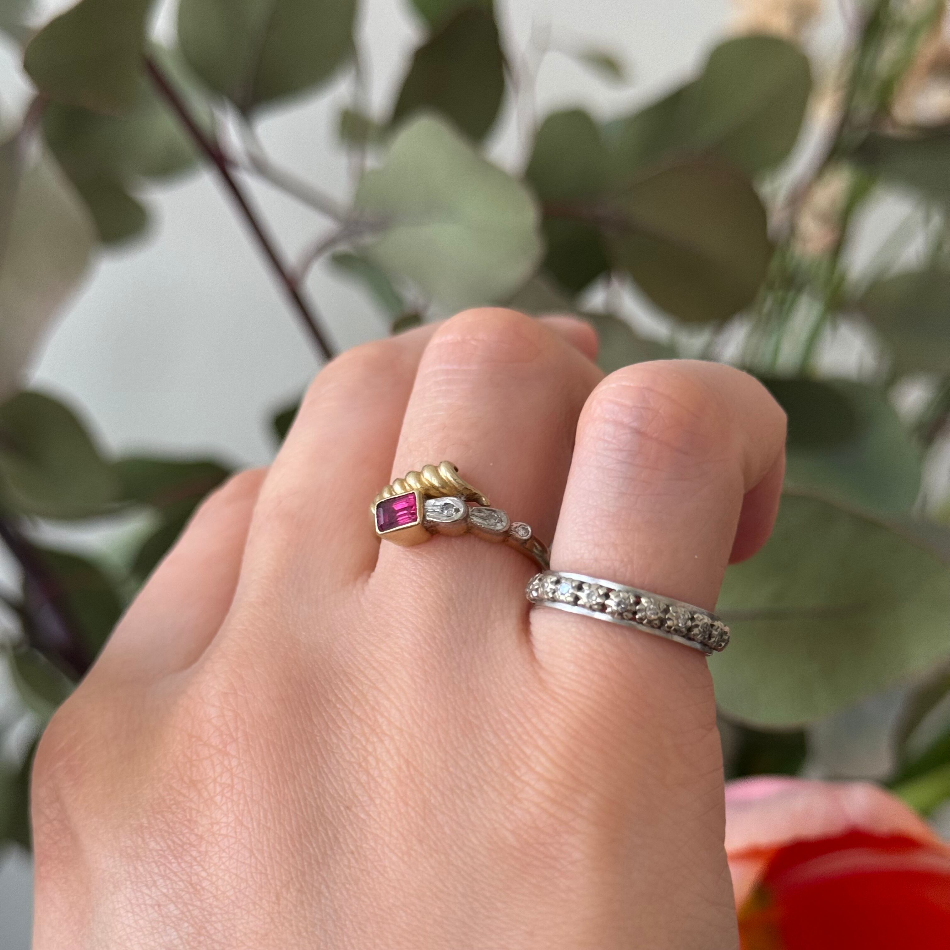 トワ・エ・モア リングのように両サイドから異なるデザインで包み合せられたリングのご紹介です。左右対称ではないところが絶妙なバランスで魅力的です。