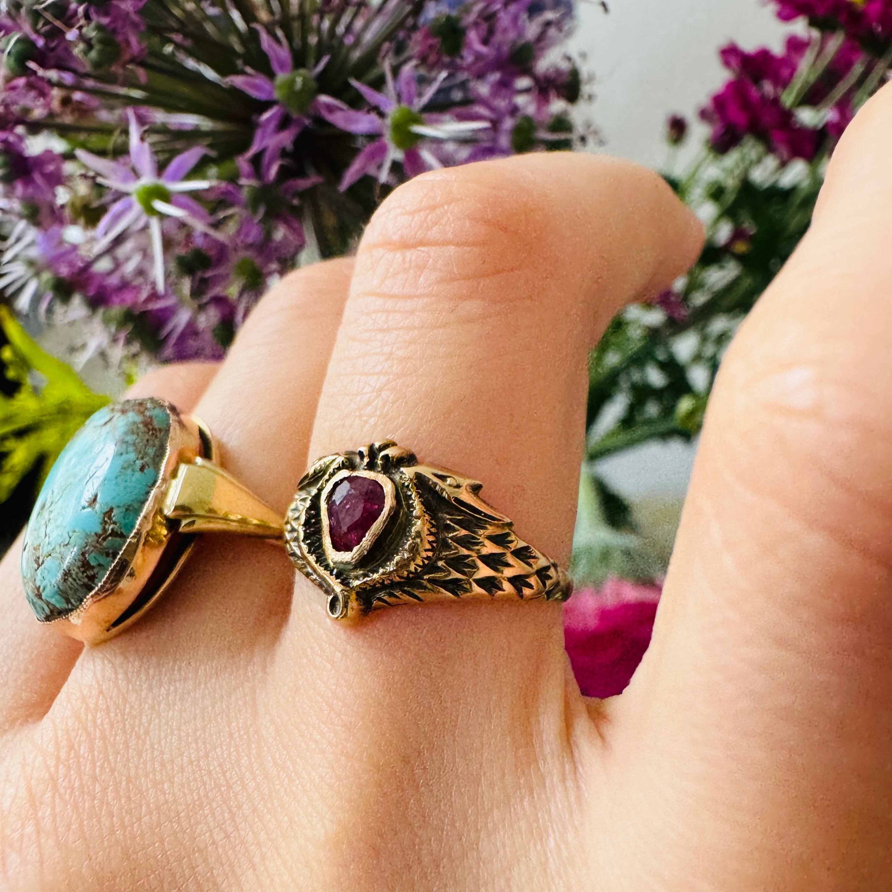 ペリカンとルビー、ガーネットの組み合わせは当時の女王が所有する宝石のコレクションに見られ、今作のデザインはその影響を受けたと考えられる類稀な逸品です。