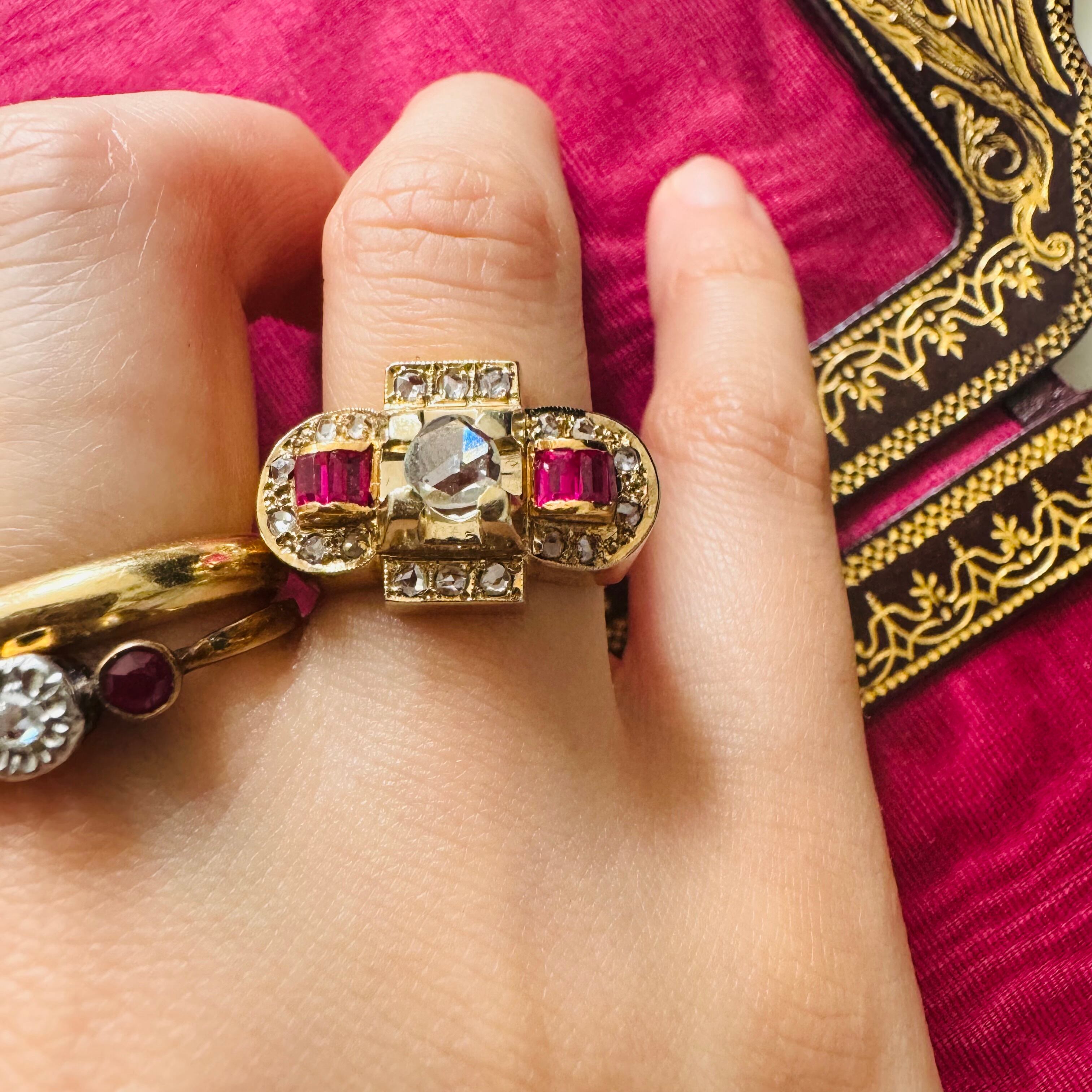 全体的に目立つ傷はなく良好ですがルビーに小傷があります。内側ですので目立ちにくい印象です。写真からご確認ください。古い品ですので小傷、スレや時代変化あり。