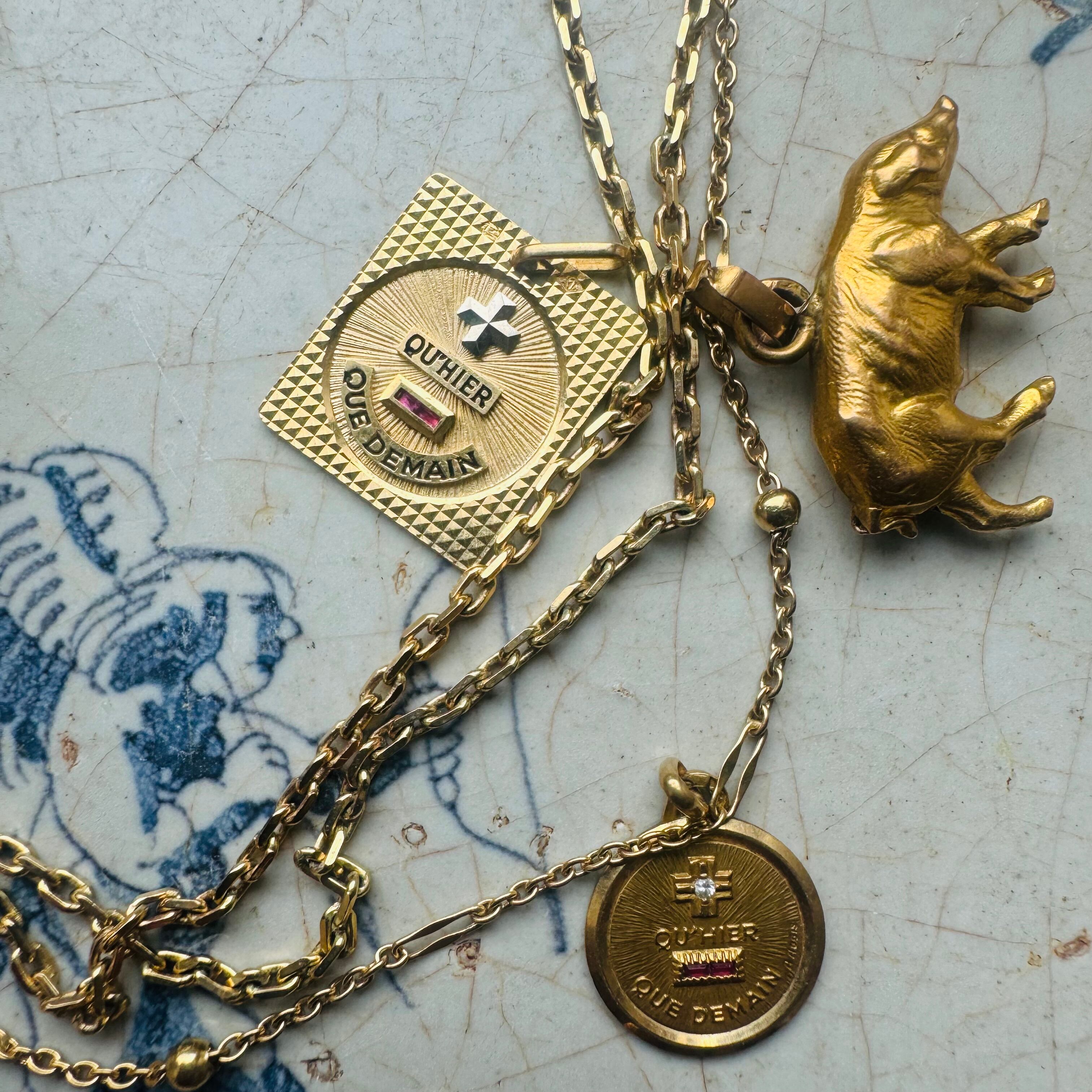 長さがあるので重ね付けのアクセントとして活躍してくれます。少し長めのチェーンを一つ持っていると万能です。